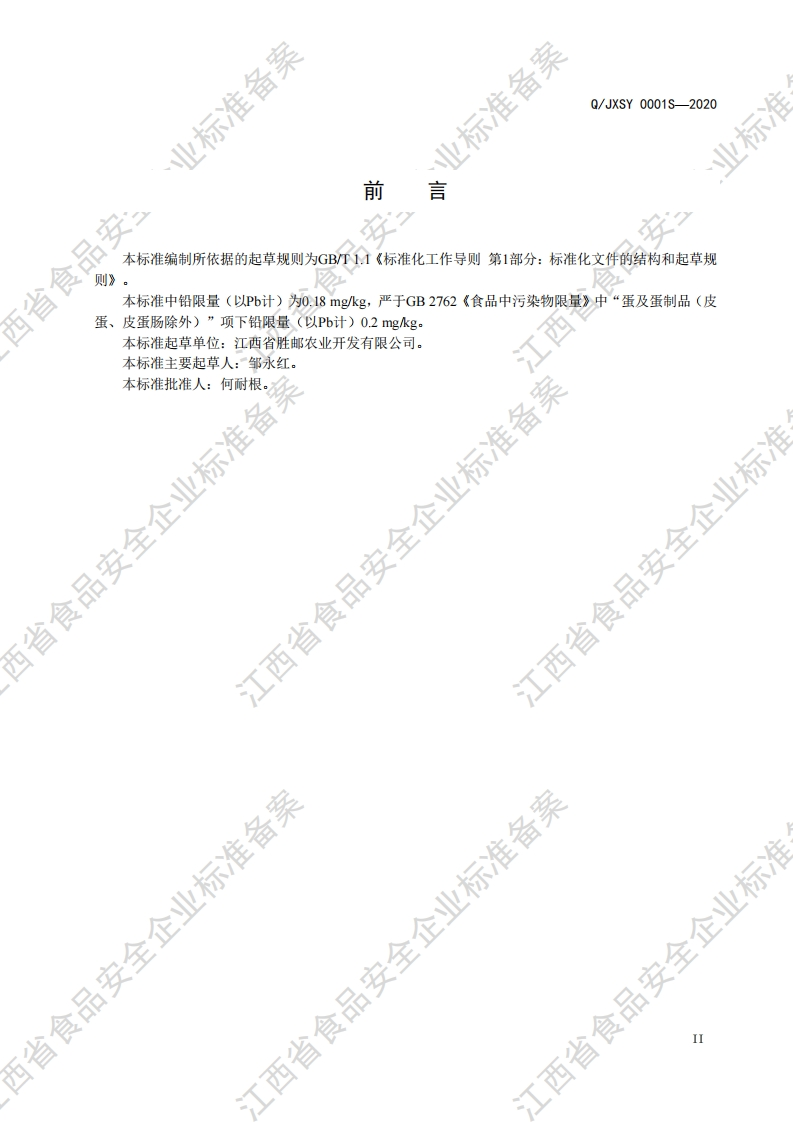 食品安全企业标准Q_JXSY0001S-2020咸蛋348072@abc3个月前发布关注私信0.42MB9页042食品安全企业标准Q_JXSY0001S-2020咸蛋此内容为付费资源,请付费后查看¥17¥19黄金会员免费钻石会员免费立即购买您当前未登录!建议登陆后购买,可保存购买订单付费资源 第1页 / 共9页 第2页 / 共9页 第3页 / 共9页 第4页 / 共9页 第5页 / 共9页 试读已结束,还剩4页,您可下载完整版后进行离线阅读 THE END播放器标准规范餐饮美食 喜欢就支持一下吧收藏