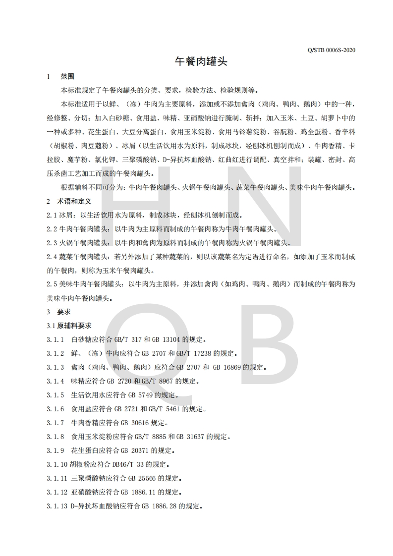 食品安全企业标准Q_STB0006S-2020午餐肉罐头348072@abc10天前发布关注私信0.23MB6页033食品安全企业标准Q_STB0006S-2020午餐肉罐头此内容为付费资源,请付费后查看¥19¥23黄金会员免费钻石会员免费立即购买您当前未登录!建议登陆后购买,可保存购买订单付费资源 第1页 / 共6页 第2页 / 共6页 第3页 / 共6页 第4页 / 共6页 试读已结束,还剩2页,您可下载完整版后进行离线阅读 THE END农学类标准规范餐饮美食 喜欢就支持一下吧收藏