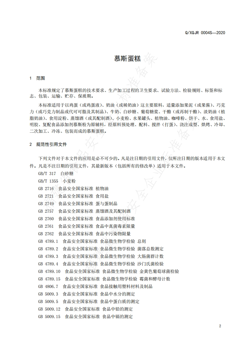 食品安全企业标准Q_XQJR0004S-2020慕斯蛋糕348072@abc1个月前发布关注私信0.36MB9页039食品安全企业标准Q_XQJR0004S-2020慕斯蛋糕此内容为付费资源,请付费后查看¥19¥23黄金会员免费钻石会员免费立即购买您当前未登录!建议登陆后购买,可保存购买订单付费资源 第1页 / 共9页 第2页 / 共9页 第3页 / 共9页 第4页 / 共9页 试读已结束,还剩5页,您可下载完整版后进行离线阅读 THE END播放器标准规范餐饮美食 喜欢就支持一下吧收藏