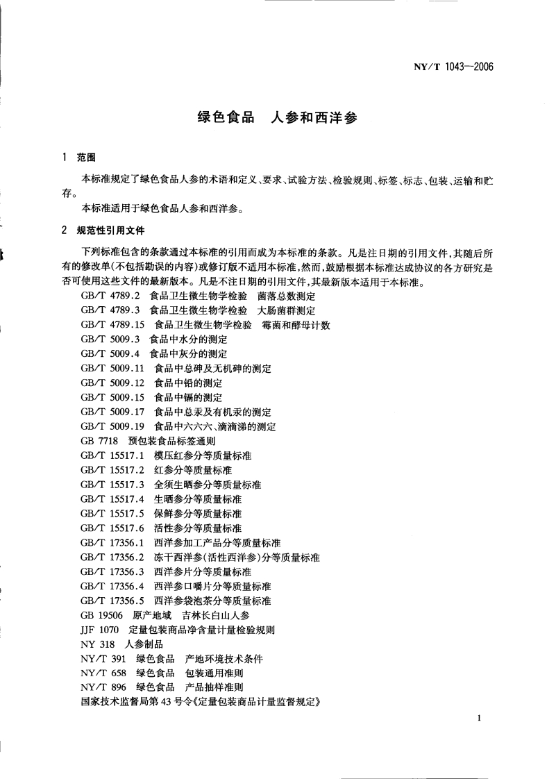 中华人民共和国农业行业标准NY_T1043-2006绿色食品人参和西洋参348072@abc1个月前发布关注私信0.18MB7页036中华人民共和国农业行业标准NY_T1043-2006绿色食品人参和西洋参此内容为付费资源,请付费后查看¥19¥21黄金会员免费钻石会员免费立即购买您当前未登录!建议登陆后购买,可保存购买订单付费资源 第1页 / 共7页 第2页 / 共7页 第3页 / 共7页 第4页 / 共7页 试读已结束,还剩3页,您可下载完整版后进行离线阅读 THE END播放器标准规范餐饮美食 喜欢就支持一下吧收藏