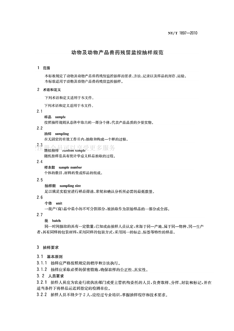 中华人民共和国农业行业标准NY_T1897-2010动物及动物产品兽药残留监控抽样规范348072@abc1个月前发布关注私信0.73MB12页034中华人民共和国农业行业标准NY_T1897-2010动物及动物产品兽药残留监控抽样规范此内容为付费资源,请付费后查看¥19¥21黄金会员免费钻石会员免费立即购买您当前未登录!建议登陆后购买,可保存购买订单付费资源 第1页 / 共12页 第2页 / 共12页 第3页 / 共12页 第4页 / 共12页 试读已结束,还剩8页,您可下载完整版后进行离线阅读 THE END播放器标准规范餐饮美食 喜欢就支持一下吧收藏