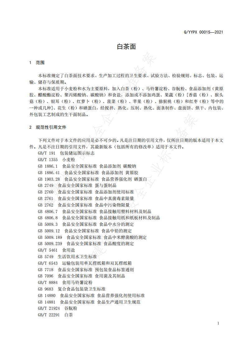 食品安全企业标准Q_YYPX0001S-2021白茶面新质力文库 - 聚焦新质生产力发展的数字化知识库_行业洞察 / 理论成果 / 实践指南免费下载新质力文库