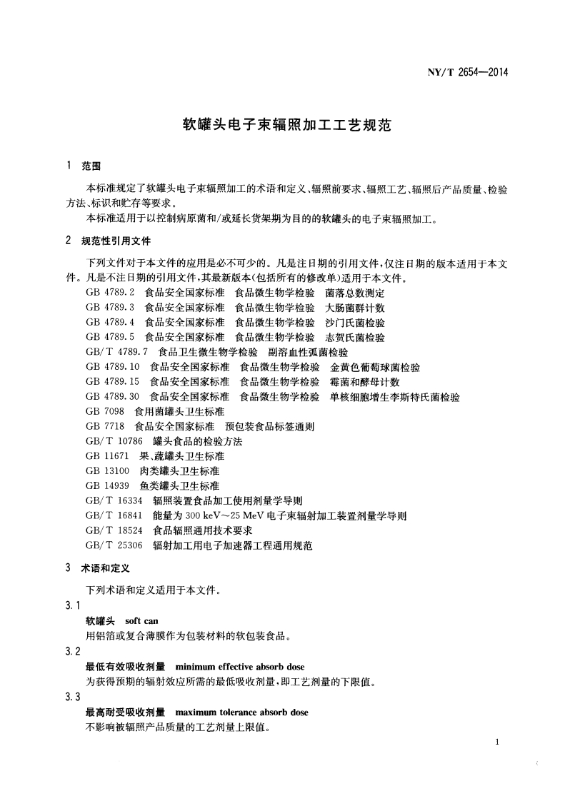 中华人民共和国农业行业标准NY_T2654-2014软罐头电子束辐照加工工艺规范348072@abc1个月前发布关注私信0.17MB7页048中华人民共和国农业行业标准NY_T2654-2014软罐头电子束辐照加工工艺规范此内容为付费资源,请付费后查看¥19¥21黄金会员免费钻石会员免费立即购买您当前未登录!建议登陆后购买,可保存购买订单付费资源 第1页 / 共7页 第2页 / 共7页 第3页 / 共7页 第4页 / 共7页 试读已结束,还剩3页,您可下载完整版后进行离线阅读 THE END播放器标准规范餐饮美食 喜欢就支持一下吧收藏