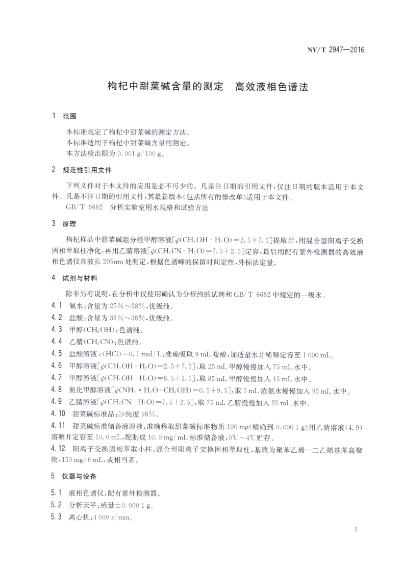 中华人民共和国农业行业标准NY_T2947-2016枸杞中甜菜碱含量的标准测定高效液相色谱法348072@abc12天前发布关注私信7.23MB6页047中华人民共和国农业行业标准NY_T2947-2016枸杞中甜菜碱含量的标准测定高效液相色谱法此内容为付费资源,请付费后查看¥19¥21黄金会员免费钻石会员免费立即购买您当前未登录!建议登陆后购买,可保存购买订单付费资源 第1页 / 共6页 第2页 / 共6页 第3页 / 共6页 第4页 / 共6页 试读已结束,还剩2页,您可下载完整版后进行离线阅读 THE END农学类标准规范餐饮美食 喜欢就支持一下吧收藏