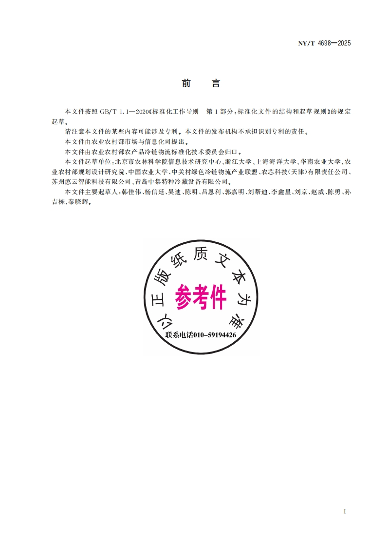 中华人民共和国农业行业标准NY_T4698-2025农产品产地仓储保鲜设施信息化管理规范348072@abc1个月前发布关注私信1MB12页023中华人民共和国农业行业标准NY_T4698-2025农产品产地仓储保鲜设施信息化管理规范此内容为付费资源,请付费后查看¥19¥23黄金会员免费钻石会员免费立即购买您当前未登录!建议登陆后购买,可保存购买订单付费资源 第1页 / 共12页 第2页 / 共12页 第3页 / 共12页 第4页 / 共12页 试读已结束,还剩8页,您可下载完整版后进行离线阅读 THE END播放器标准规范餐饮美食 喜欢就支持一下吧收藏