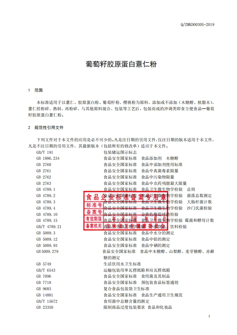 食品安全企业标准Q_ZMKD0030S-2019葡萄籽胶原蛋白薏仁粉348072@abc1个月前发布关注私信0.24MB6页033食品安全企业标准Q_ZMKD0030S-2019葡萄籽胶原蛋白薏仁粉此内容为付费资源,请付费后查看¥19¥23黄金会员免费钻石会员免费立即购买您当前未登录!建议登陆后购买,可保存购买订单付费资源 第1页 / 共6页 第2页 / 共6页 第3页 / 共6页 第4页 / 共6页 试读已结束,还剩2页,您可下载完整版后进行离线阅读 THE END播放器标准规范餐饮美食 喜欢就支持一下吧收藏