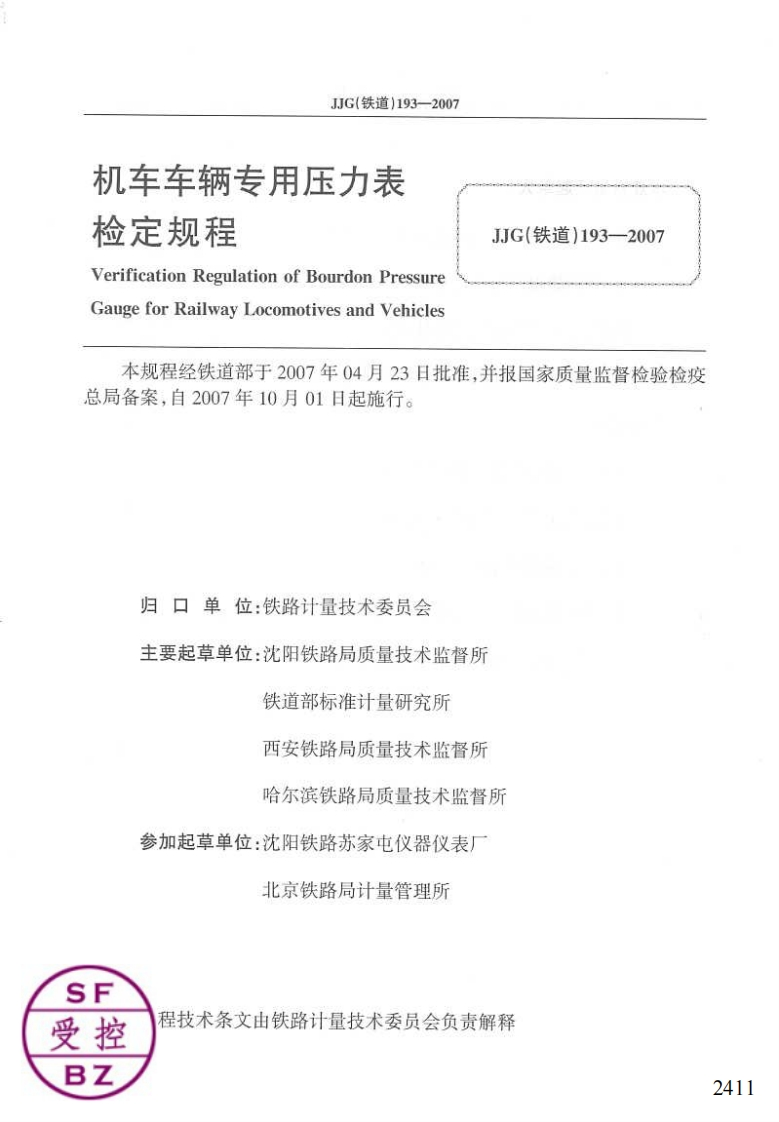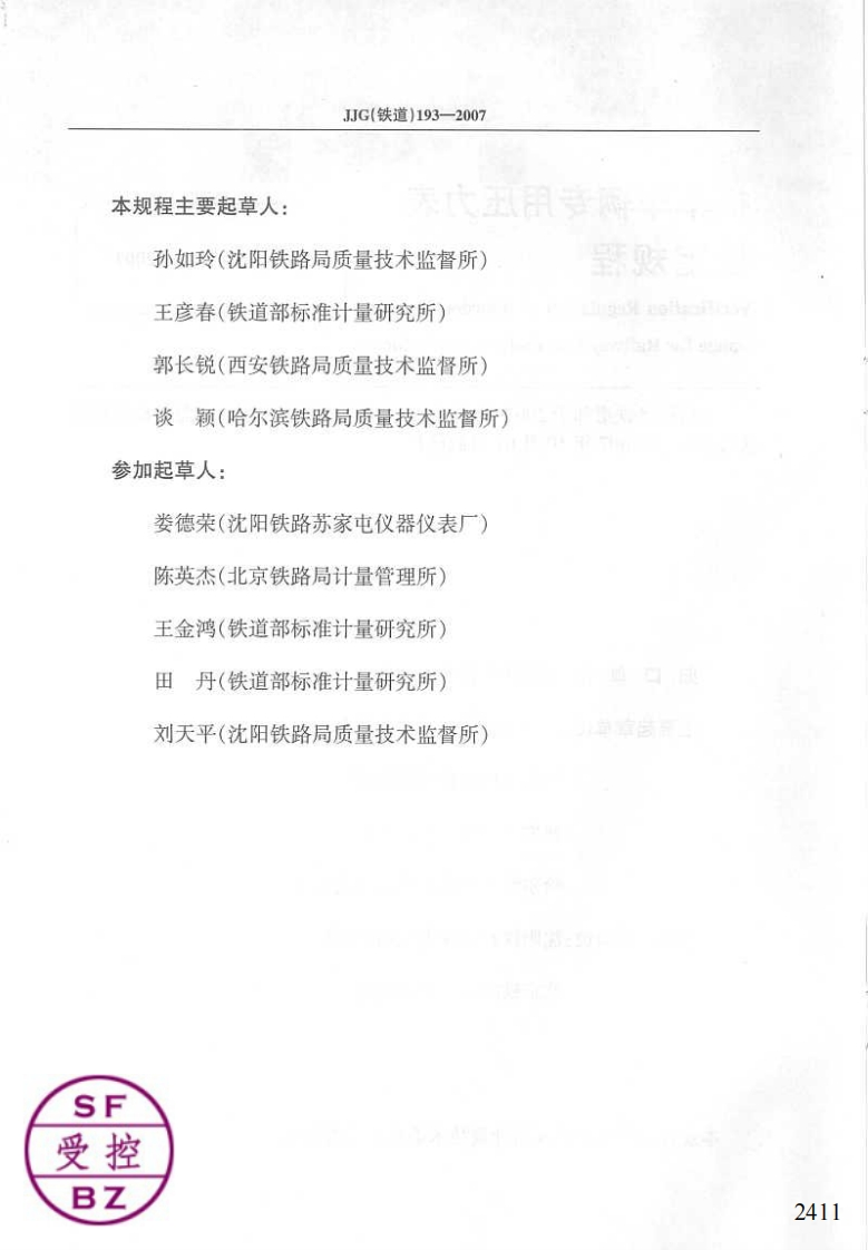 JJG(铁道)193-2007机车车辆专用压力表校准标定规程(新版)348072@abc1个月前发布关注私信0.88MB13页037JJG(铁道)193-2007机车车辆专用压力表校准标定规程(新版)此内容为付费资源,请付费后查看¥19¥23黄金会员免费钻石会员免费立即购买您当前未登录!建议登陆后购买,可保存购买订单付费资源 第1页 / 共13页 第2页 / 共13页 第3页 / 共13页 第4页 / 共13页 试读已结束,还剩9页,您可下载完整版后进行离线阅读 THE END土木工程无线电标准规范 喜欢就支持一下吧收藏