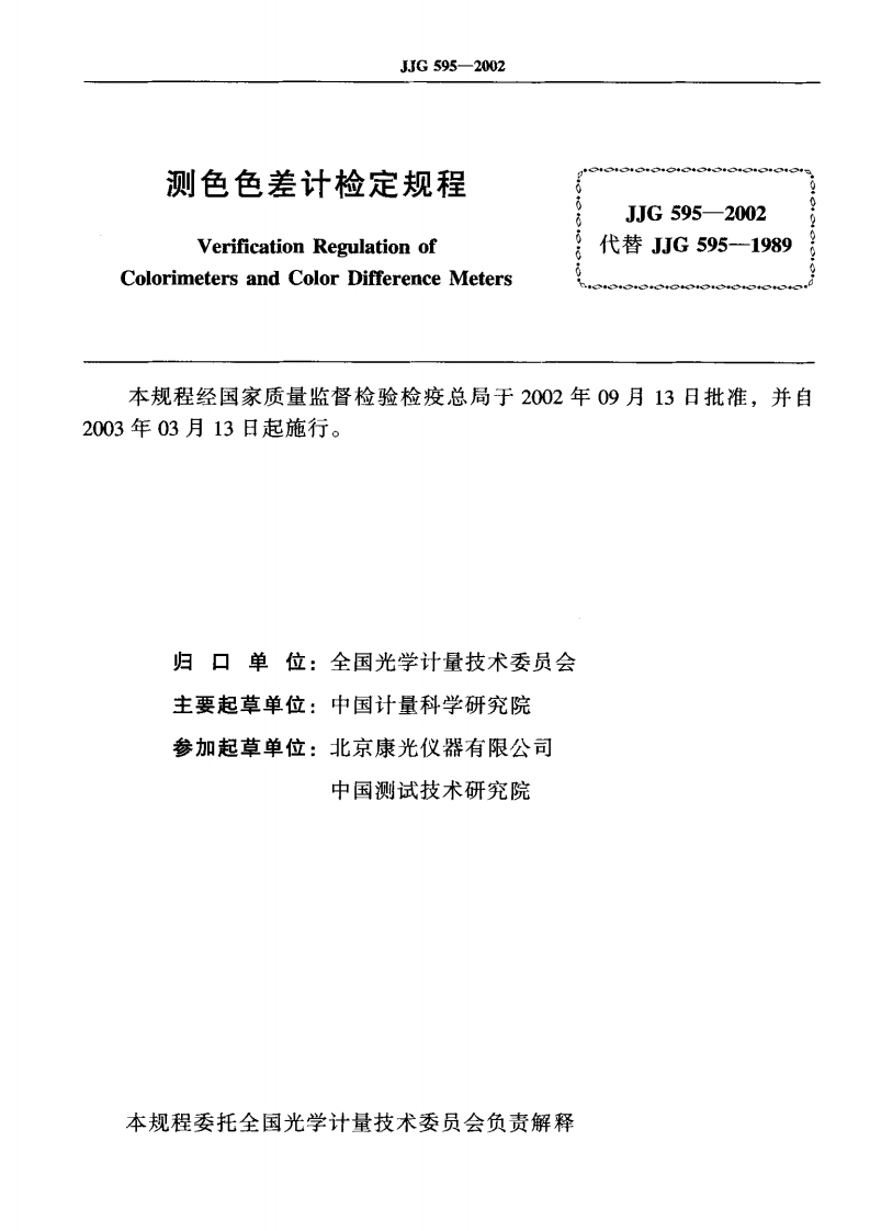 JJG595-2002测色色差计校准标定规程(新版)348072@abc1个月前发布关注私信0.33MB16页029JJG595-2002测色色差计校准标定规程(新版)此内容为付费资源,请付费后查看¥19¥23黄金会员免费钻石会员免费立即购买您当前未登录!建议登陆后购买,可保存购买订单付费资源 第1页 / 共16页 第2页 / 共16页 第3页 / 共16页 第4页 / 共16页 试读已结束,还剩12页,您可下载完整版后进行离线阅读 THE END土木工程无线电标准规范 喜欢就支持一下吧收藏