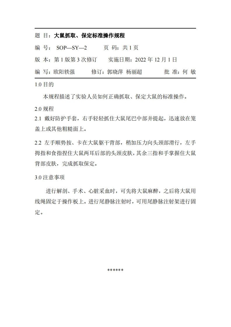 动物实验标准操作规程(SOP)汇编348072@abc1个月前发布关注私信0.49MB38页045动物实验标准操作规程(SOP)汇编此内容为付费资源,请付费后查看¥19¥23黄金会员免费钻石会员免费立即购买您当前未登录!建议登陆后购买,可保存购买订单付费资源 第1页 / 共38页 第2页 / 共38页 第3页 / 共38页 第4页 / 共38页 试读已结束,还剩34页,您可下载完整版后进行离线阅读 THE END土木工程工学类标准规范 喜欢就支持一下吧收藏
