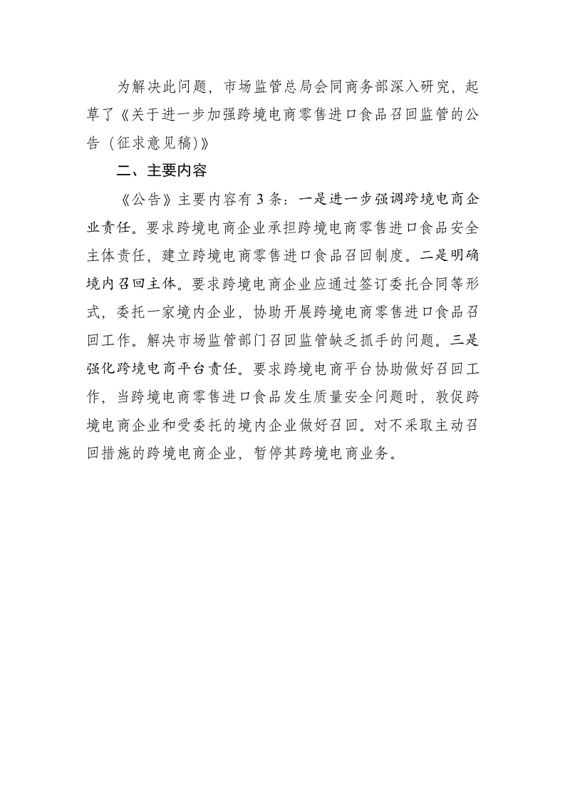 附件2.《市场监管总局-商务部关于进一步加强跨境电商零售进口食品召回监管的公告(征求意见稿)》起草说明348072@abc1个月前发布关注私信12.44KB2页041附件2.《市场监管总局-商务部关于进一步加强跨境电商零售进口食品召回监管的公告(征求意见稿)》起草说明此内容为付费资源,请付费后查看¥19¥23黄金会员免费钻石会员免费立即购买您当前未登录!建议登陆后购买,可保存购买订单付费资源 第1页 / 共2页 第2页 / 共2页 已完成全部阅读,共2页 THE END标准规范 喜欢就支持一下吧收藏