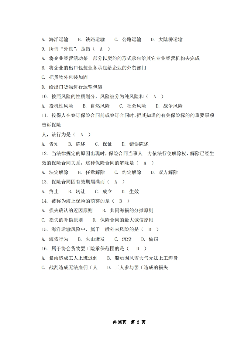 17_国际经济与贸易专业-国际运输与保险-备考练习试题348072@abc7天前发布关注私信0.41MB35页04417_国际经济与贸易专业-国际运输与保险-备考练习试题此内容为付费资源,请付费后查看¥19¥23黄金会员免费钻石会员免费立即购买您当前未登录!建议登陆后购买,可保存购买订单付费资源 第1页 / 共35页 第2页 / 共35页 第3页 / 共35页 第4页 / 共35页 试读已结束,还剩31页,您可下载完整版后进行离线阅读 THE END医学类医疗医药哲学类土木工程招生策划文学类毕业设计法学类管理学类网站设计高中教育高考真题 喜欢就支持一下吧收藏