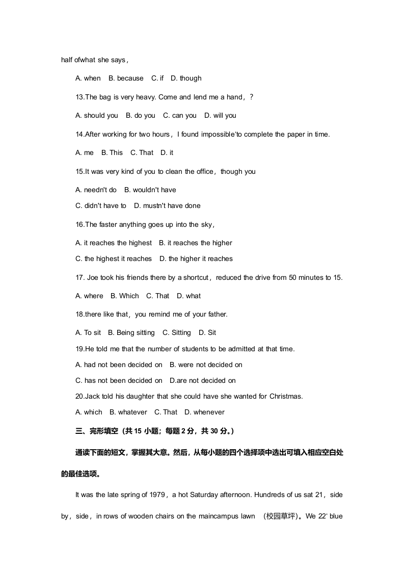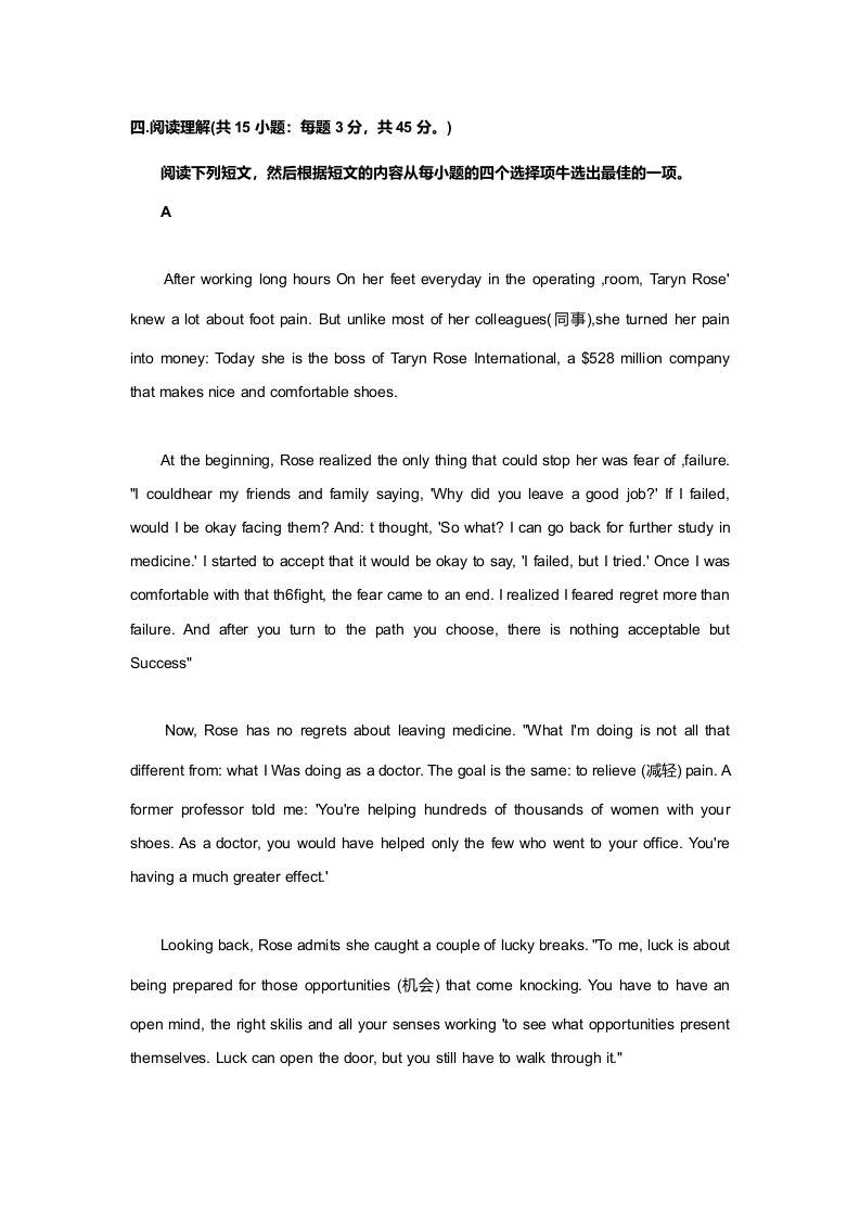 2013年成人高考高起专英语试题及答案348072@abc7天前发布关注私信71KB17页0222013年成人高考高起专英语试题及答案此内容为付费资源,请付费后查看¥19¥23黄金会员免费钻石会员免费立即购买您当前未登录!建议登陆后购买,可保存购买订单付费资源 第1页 / 共17页 第2页 / 共17页 第3页 / 共17页 第4页 / 共17页 试读已结束,还剩13页,您可下载完整版后进行离线阅读 THE END医学类医疗医药哲学类土木工程招生策划文学类毕业设计法学类管理学类网站设计高中教育高考真题 喜欢就支持一下吧收藏