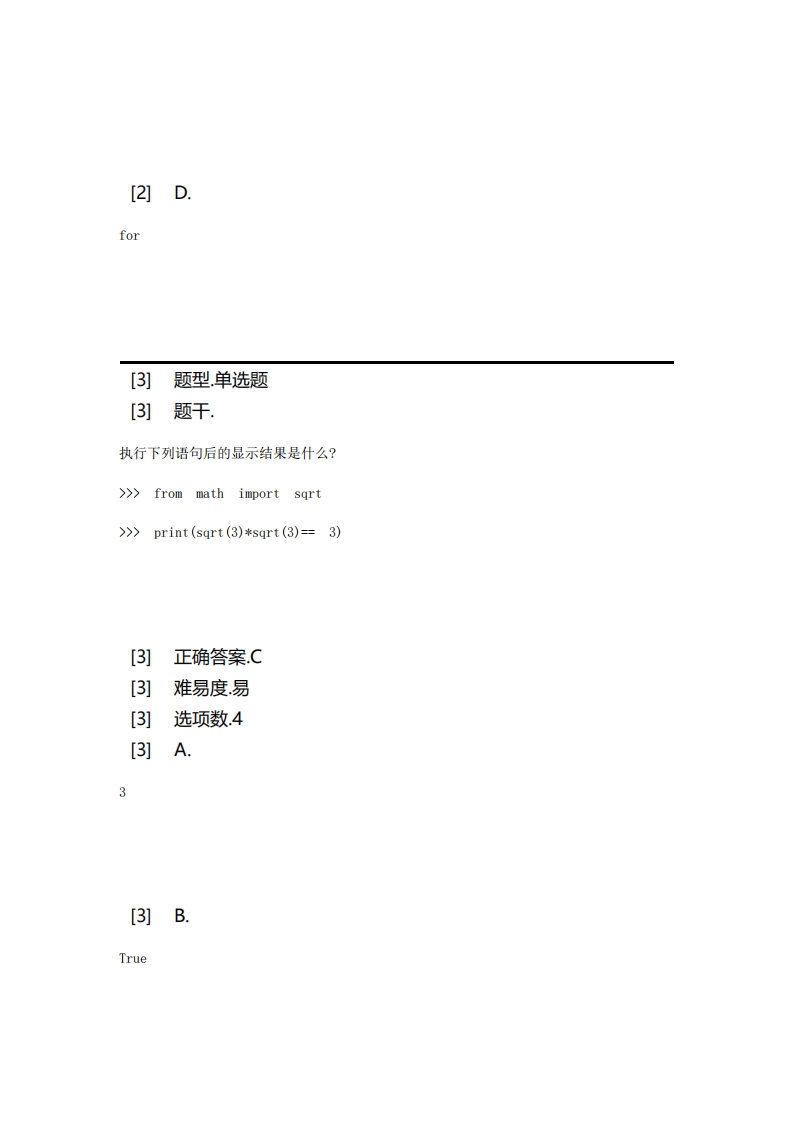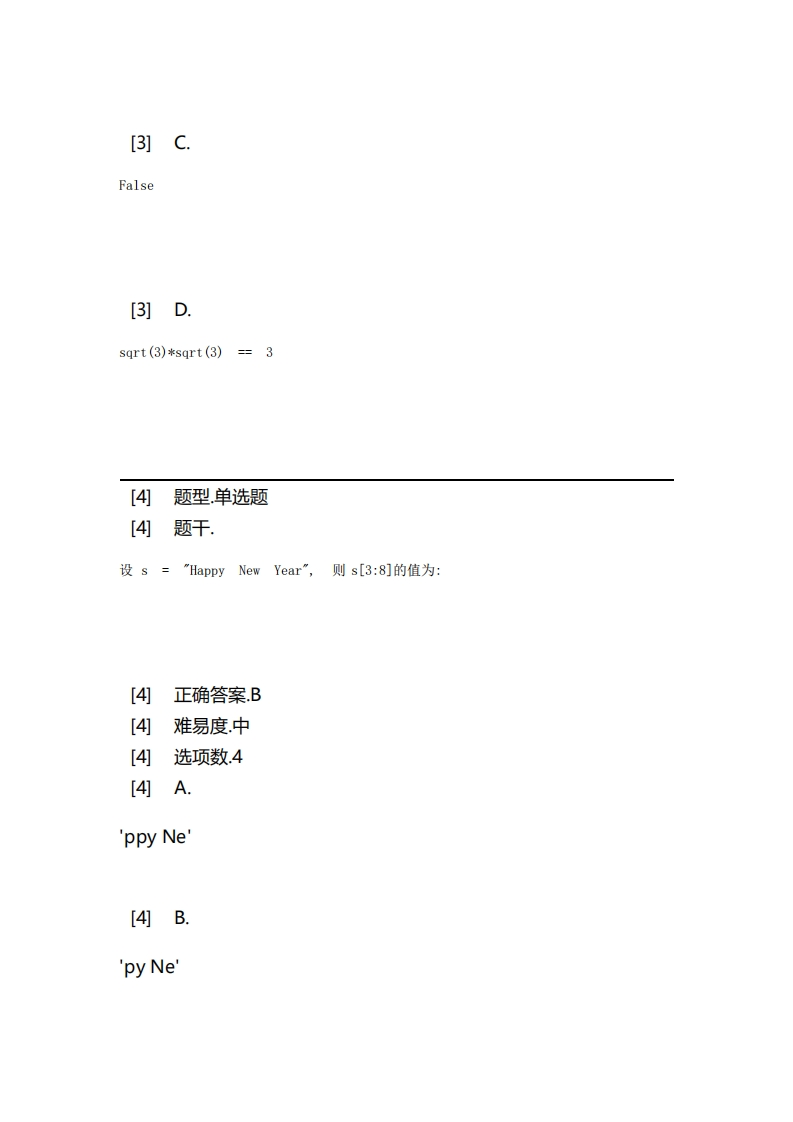 2025年春季-Python程序设计-备考联系试题348072@abc1个月前发布关注私信0.90MB221页0442025年春季-Python程序设计-备考联系试题此内容为付费资源,请付费后查看¥19¥23黄金会员免费钻石会员免费立即购买您当前未登录!建议登陆后购买,可保存购买订单付费资源 第1页 / 共221页 第2页 / 共221页 第3页 / 共221页 第4页 / 共221页 试读已结束,还剩217页,您可下载完整版后进行离线阅读 THE END医疗医药土木工程工程机械招生策划数控机床毕业设计电焊机网站设计车辆音响数码高中教育高考真题 喜欢就支持一下吧收藏
