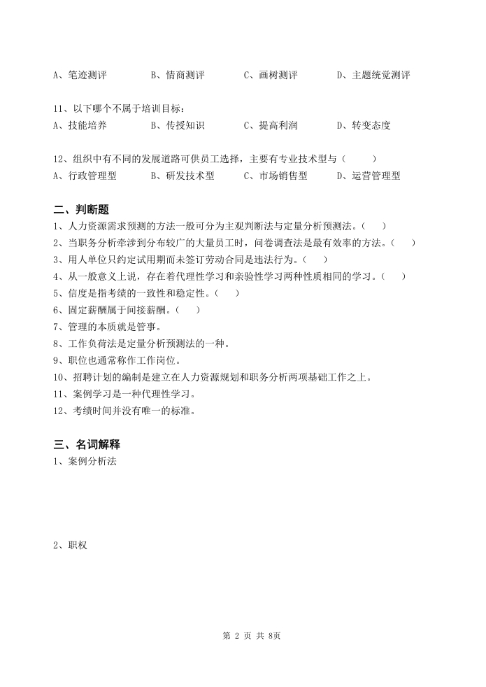 人力资源管理备考练习试题(7)348072@abc1个月前发布关注私信0.36MB8页040人力资源管理备考练习试题(7)此内容为付费资源,请付费后查看¥19¥23黄金会员免费钻石会员免费立即购买您当前未登录!建议登陆后购买,可保存购买订单付费资源 第1页 / 共8页 第2页 / 共8页 第3页 / 共8页 第4页 / 共8页 试读已结束,还剩4页,您可下载完整版后进行离线阅读 THE END党政宣传初中教育员工培训工控机电打印机电焊机规章制度车辆音响数码高考真题 喜欢就支持一下吧收藏