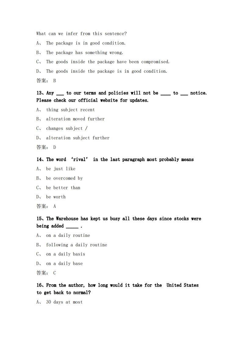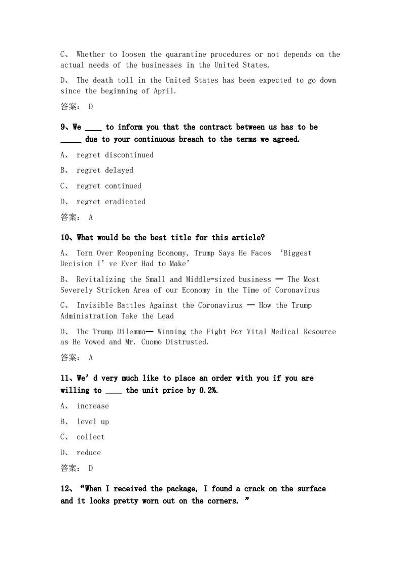 商务英语视听说必考练习题试题348072@abc1个月前发布关注私信0.95MB219页042商务英语视听说必考练习题试题此内容为付费资源,请付费后查看¥19¥23黄金会员免费钻石会员免费立即购买您当前未登录!建议登陆后购买,可保存购买订单付费资源 第1页 / 共219页 第2页 / 共219页 第3页 / 共219页 第4页 / 共219页 试读已结束,还剩215页,您可下载完整版后进行离线阅读 THE END党政宣传初中教育员工培训工控机电打印机电焊机规章制度车辆音响数码高考真题 喜欢就支持一下吧收藏