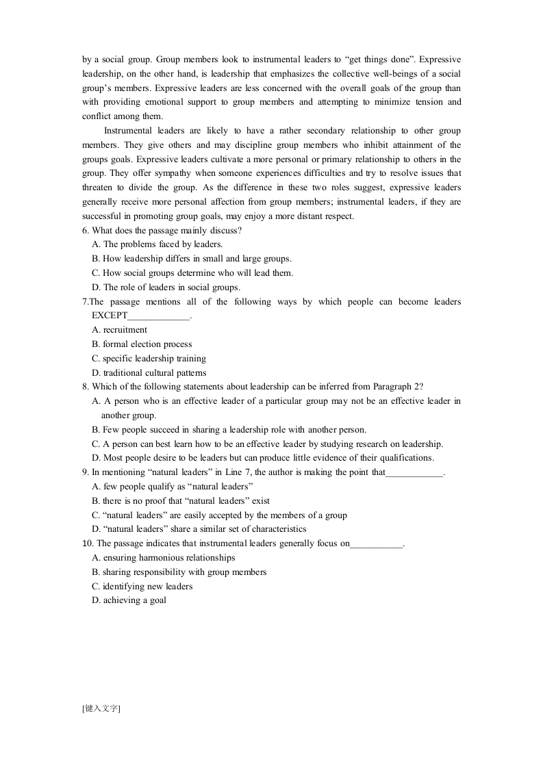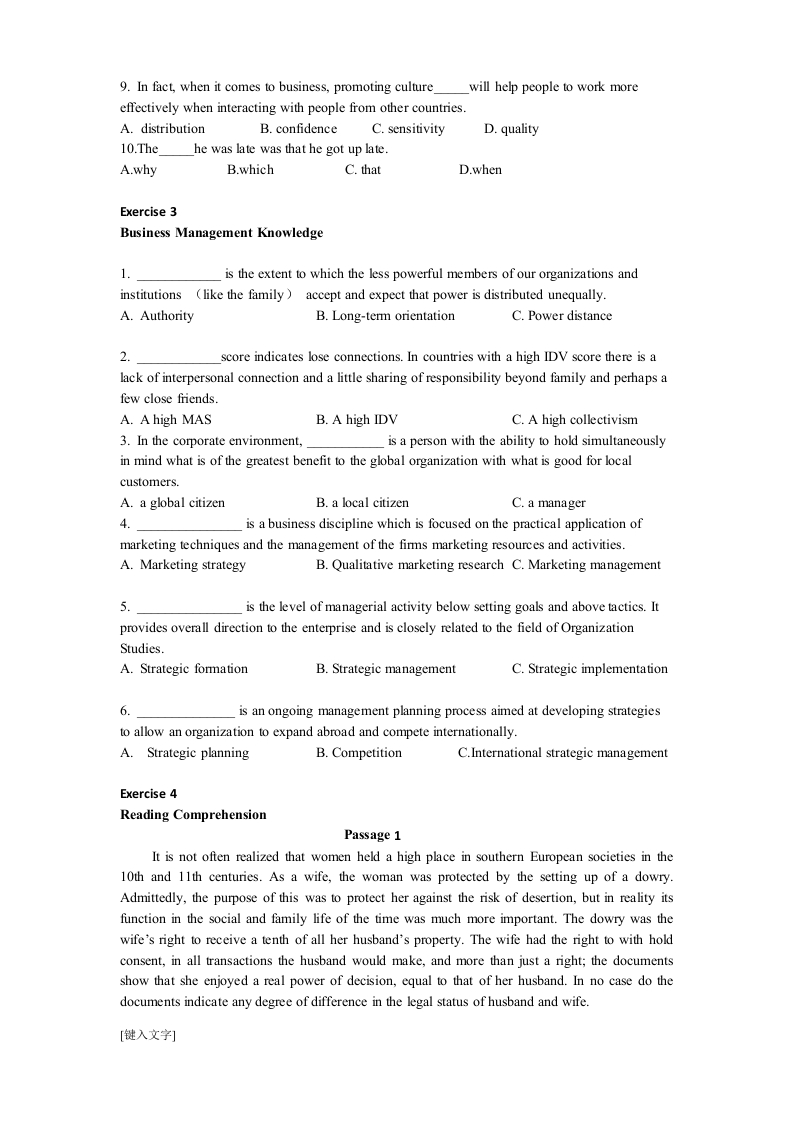 国际商务英语备考练习试题(2)(1)348072@abc1个月前发布关注私信31KB6页025国际商务英语备考练习试题(2)(1)此内容为付费资源,请付费后查看¥19¥23黄金会员免费钻石会员免费立即购买您当前未登录!建议登陆后购买,可保存购买订单付费资源 第1页 / 共6页 第2页 / 共6页 第3页 / 共6页 第4页 / 共6页 试读已结束,还剩2页,您可下载完整版后进行离线阅读 THE END党政宣传初中教育员工培训工控机电打印机电焊机规章制度车辆音响数码高考真题 喜欢就支持一下吧收藏