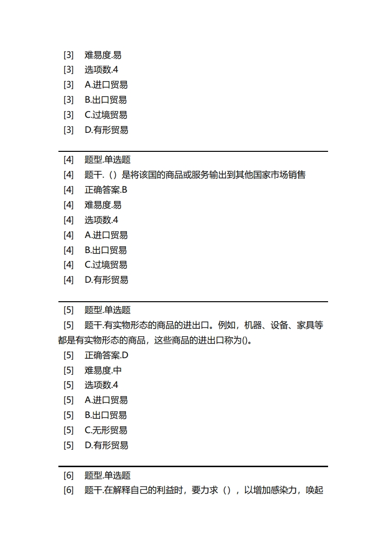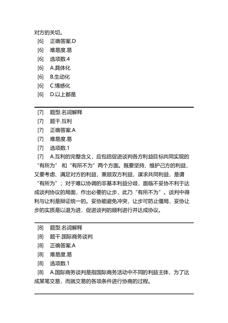 国际商务谈判必考练习题试题348072@abc1个月前发布关注私信0.62MB83页025国际商务谈判必考练习题试题此内容为付费资源,请付费后查看¥19¥23黄金会员免费钻石会员免费立即购买您当前未登录!建议登陆后购买,可保存购买订单付费资源 第1页 / 共83页 第2页 / 共83页 第3页 / 共83页 第4页 / 共83页 试读已结束,还剩79页,您可下载完整版后进行离线阅读 THE END党政宣传初中教育员工培训工控机电打印机电焊机规章制度车辆音响数码高考真题 喜欢就支持一下吧收藏