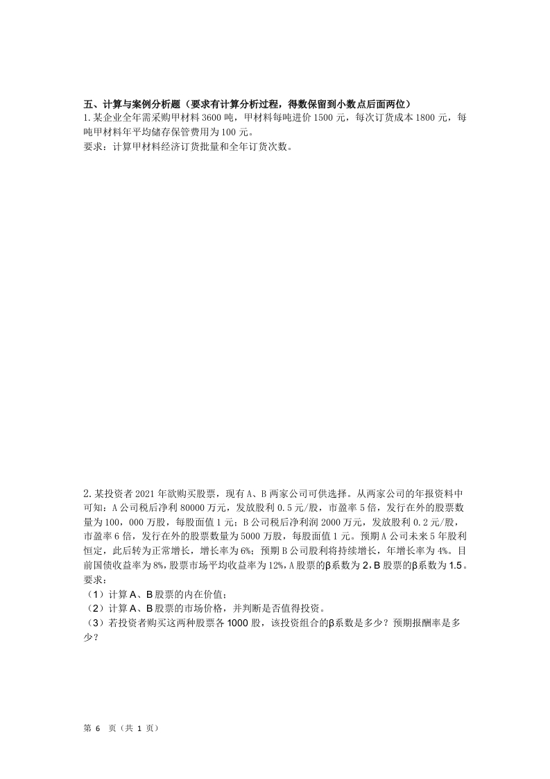 财务管理备考练习试题(5)348072@abc1个月前发布关注私信31.39KB7页021财务管理备考练习试题(5)此内容为付费资源,请付费后查看¥19¥23黄金会员免费钻石会员免费立即购买您当前未登录!建议登陆后购买,可保存购买订单付费资源 第1页 / 共7页 第2页 / 共7页 第3页 / 共7页 第4页 / 共7页 试读已结束,还剩3页,您可下载完整版后进行离线阅读 THE ENDJAVA开发Matlab仿真党政宣传农学类教育学类法学类管理学类高考真题 喜欢就支持一下吧收藏
