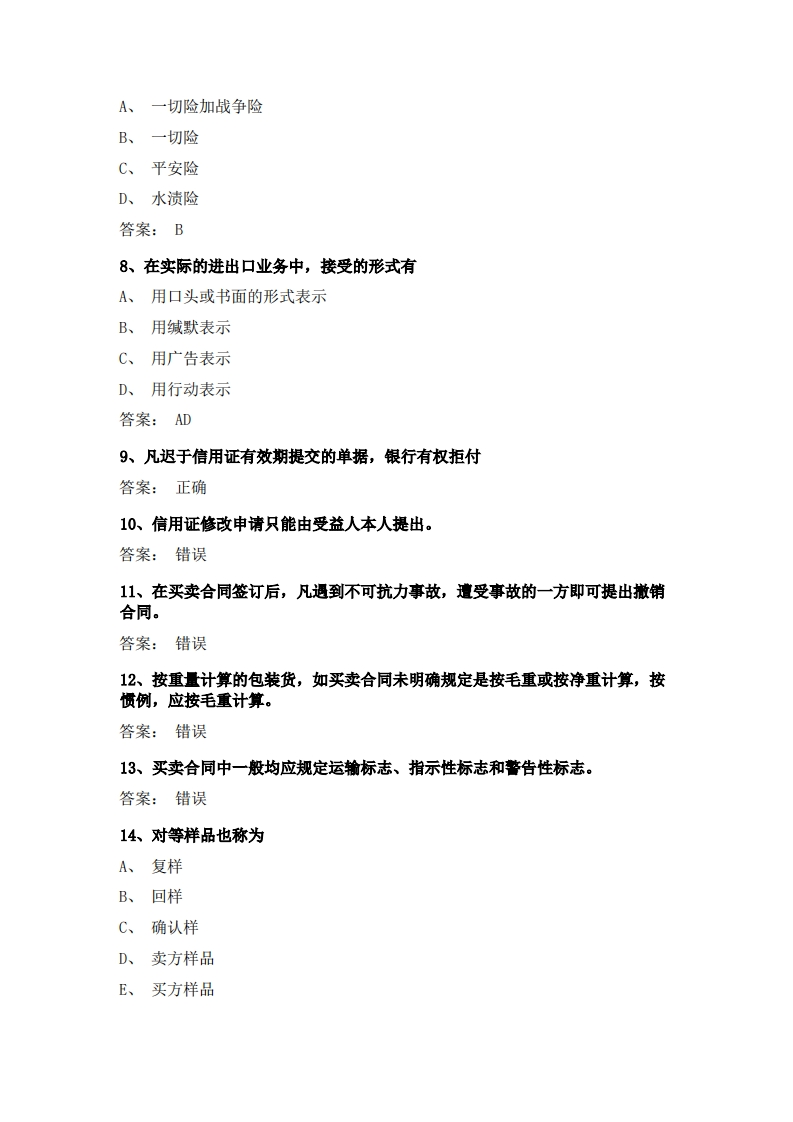 国际贸易实务(3)必考练习题试题348072@abc7天前发布关注私信0.22MB22页038国际贸易实务(3)必考练习题试题此内容为付费资源,请付费后查看¥16¥23黄金会员免费钻石会员免费立即购买您当前未登录!建议登陆后购买,可保存购买订单付费资源 第1页 / 共22页 第2页 / 共22页 第3页 / 共22页 第4页 / 共22页 试读已结束,还剩18页,您可下载完整版后进行离线阅读 THE END法学类高考真题 喜欢就支持一下吧收藏