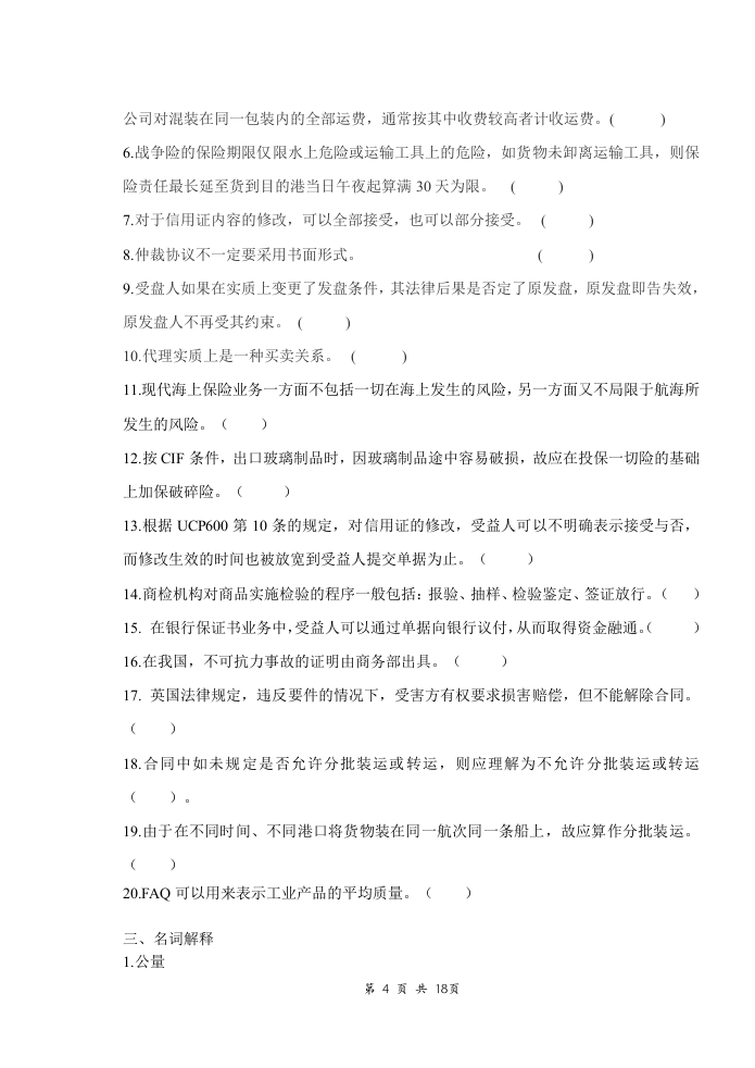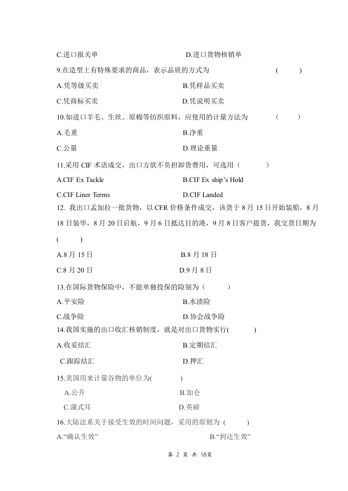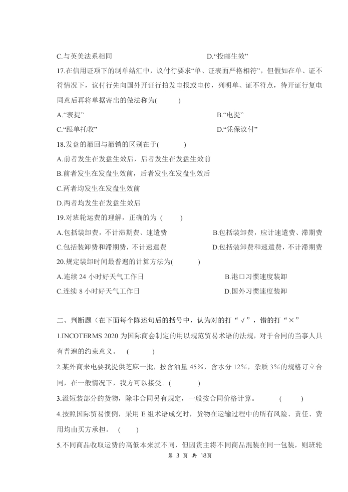 国际贸易实务备考练习试题(4)348072@abc1个月前发布关注私信72KB18页050国际贸易实务备考练习试题(4)此内容为付费资源,请付费后查看¥16¥23黄金会员免费钻石会员免费立即购买您当前未登录!建议登陆后购买,可保存购买订单付费资源 第1页 / 共18页 第2页 / 共18页 第3页 / 共18页 第4页 / 共18页 试读已结束,还剩14页,您可下载完整版后进行离线阅读 THE END音响数码高考真题 喜欢就支持一下吧收藏