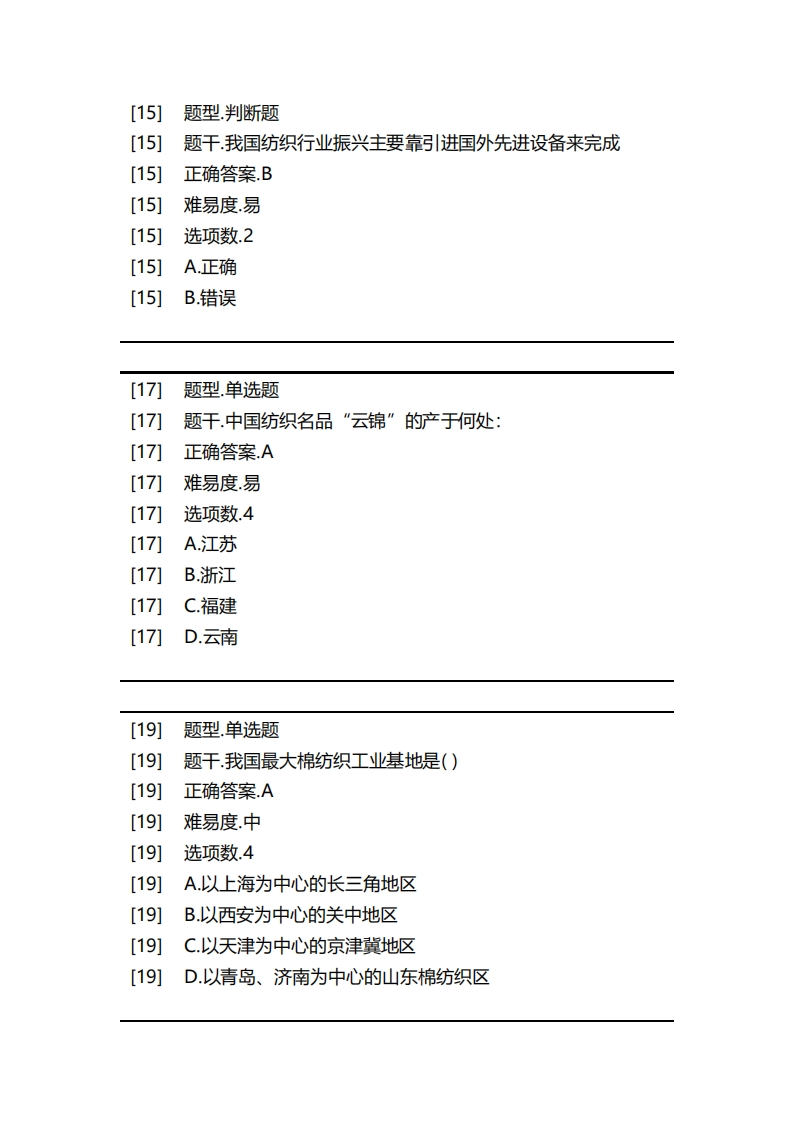 纺织商品学必考练习题试题348072@abc1个月前发布关注私信0.47MB75页020纺织商品学必考练习题试题此内容为付费资源,请付费后查看¥19¥23黄金会员免费钻石会员免费立即购买您当前未登录!建议登陆后购买,可保存购买订单付费资源 第1页 / 共75页 第2页 / 共75页 第3页 / 共75页 第4页 / 共75页 试读已结束,还剩71页,您可下载完整版后进行离线阅读 THE END土木工程工学类教育学类理学类管理学类经济学类高考真题 喜欢就支持一下吧收藏