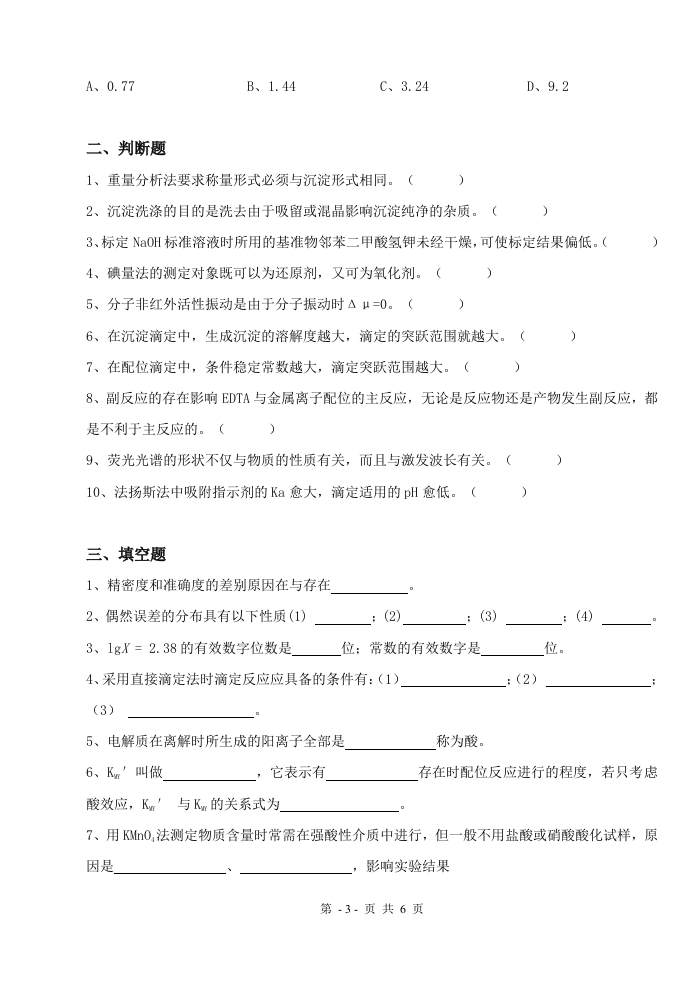 分析化学(备考练习试题)348072@abc1个月前发布关注私信81KB6页042分析化学(备考练习试题)此内容为付费资源,请付费后查看¥19¥23黄金会员免费钻石会员免费立即购买您当前未登录!建议登陆后购买,可保存购买订单付费资源 第1页 / 共6页 第2页 / 共6页 第3页 / 共6页 第4页 / 共6页 试读已结束,还剩2页,您可下载完整版后进行离线阅读 THE END仪器仪表土木工程工控机电无线电清洗设备车辆高考真题 喜欢就支持一下吧收藏