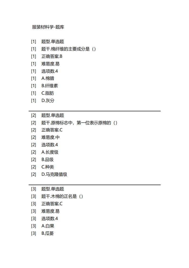 服装材料学-备考联系试题348072@abc昨天发布关注私信0.53MB78页026服装材料学-备考联系试题此内容为付费资源,请付费后查看¥19¥23黄金会员免费钻石会员免费立即购买您当前未登录!建议登陆后购买,可保存购买订单付费资源 第1页 / 共78页 第2页 / 共78页 第3页 / 共78页 第4页 / 共78页 试读已结束,还剩74页,您可下载完整版后进行离线阅读 THE END土木工程工学类教育学类理学类管理学类经济学类高考真题 喜欢就支持一下吧收藏