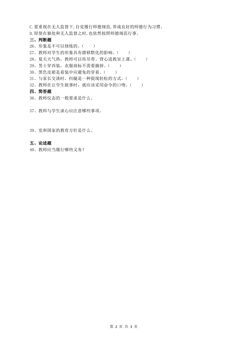 教师修养与礼仪A卷备考练习试题(1)348072@abc15天前发布关注私信22.79KB3页023教师修养与礼仪A卷备考练习试题(1)此内容为付费资源,请付费后查看¥15¥23黄金会员免费钻石会员免费立即购买您当前未登录!建议登陆后购买,可保存购买订单付费资源 第1页 / 共3页 第2页 / 共3页 第3页 / 共3页 已完成全部阅读,共3页 THE END工学类管理学类高考真题 喜欢就支持一下吧收藏