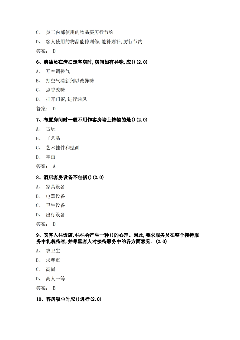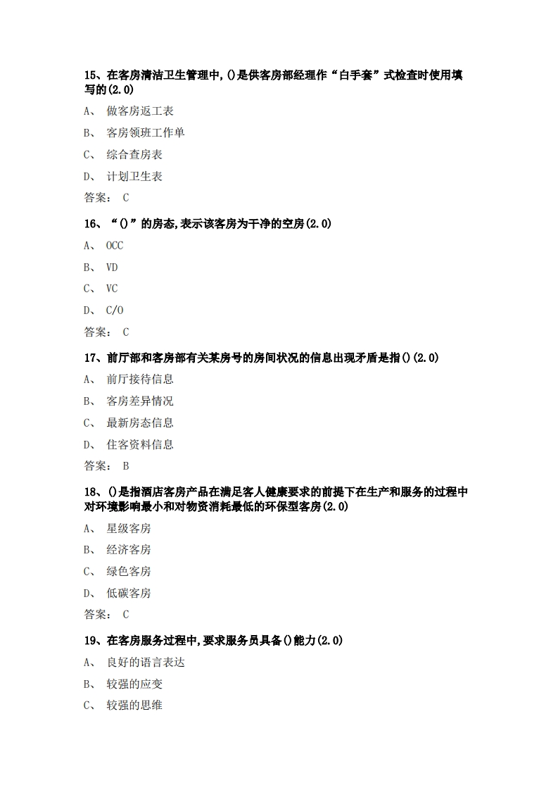 客房服务与管理必考练习题试题348072@abc1个月前发布关注私信0.28MB61页036客房服务与管理必考练习题试题此内容为付费资源,请付费后查看¥15¥23黄金会员免费钻石会员免费立即购买您当前未登录!建议登陆后购买,可保存购买订单付费资源 第1页 / 共61页 第2页 / 共61页 第3页 / 共61页 第4页 / 共61页 试读已结束,还剩57页,您可下载完整版后进行离线阅读 THE END无线电车辆高考真题 喜欢就支持一下吧收藏