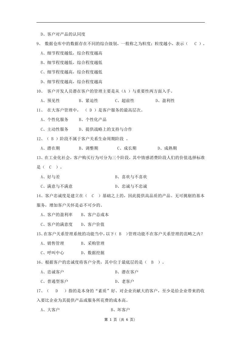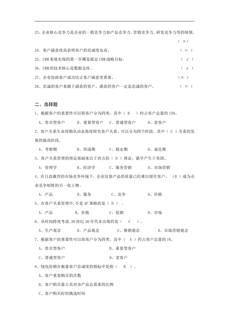 客户关系管理备考练习试题-完成348072@abc1个月前发布关注私信31.36KB7页043客户关系管理备考练习试题-完成此内容为付费资源,请付费后查看¥15¥23黄金会员免费钻石会员免费立即购买您当前未登录!建议登陆后购买,可保存购买订单付费资源 第1页 / 共7页 第2页 / 共7页 第3页 / 共7页 第4页 / 共7页 试读已结束,还剩3页,您可下载完整版后进行离线阅读 THE END工学类管理学类高考真题 喜欢就支持一下吧收藏