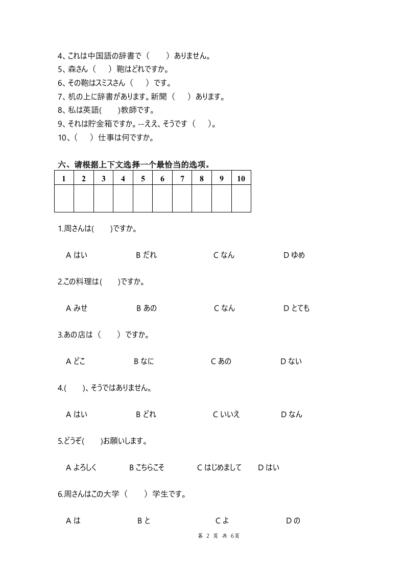 日语1(二外)备考练习试题(1)348072@abc1个月前发布关注私信50.50KB6页039日语1(二外)备考练习试题(1)此内容为付费资源,请付费后查看¥17¥19黄金会员免费钻石会员免费立即购买您当前未登录!建议登陆后购买,可保存购买订单付费资源 第1页 / 共6页 第2页 / 共6页 第3页 / 共6页 第4页 / 共6页 试读已结束,还剩2页,您可下载完整版后进行离线阅读 THE ENDPPT模板 喜欢就支持一下吧收藏