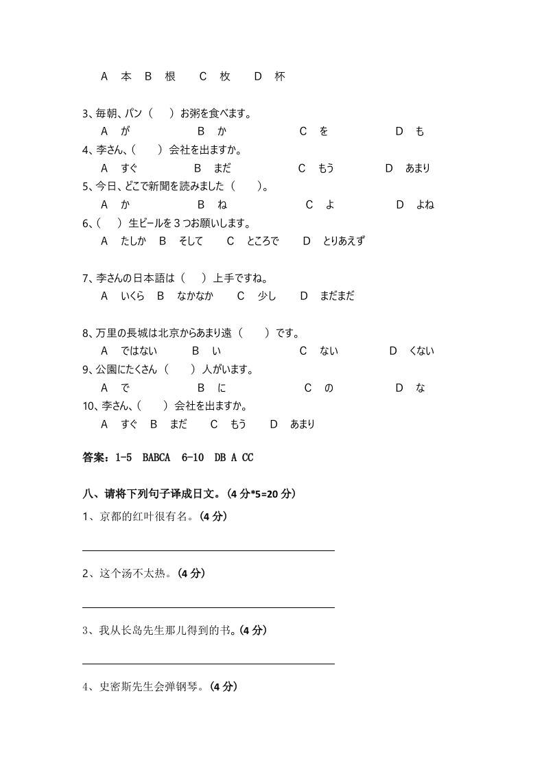 日语备考练习试题(1)348072@abc1个月前发布关注私信23.08KB5页042日语备考练习试题(1)此内容为付费资源,请付费后查看¥17¥19黄金会员免费钻石会员免费立即购买您当前未登录!建议登陆后购买,可保存购买订单付费资源 第1页 / 共5页 第2页 / 共5页 第3页 / 共5页 第4页 / 共5页 试读已结束,还剩1页,您可下载完整版后进行离线阅读 THE ENDPPT模板 喜欢就支持一下吧收藏