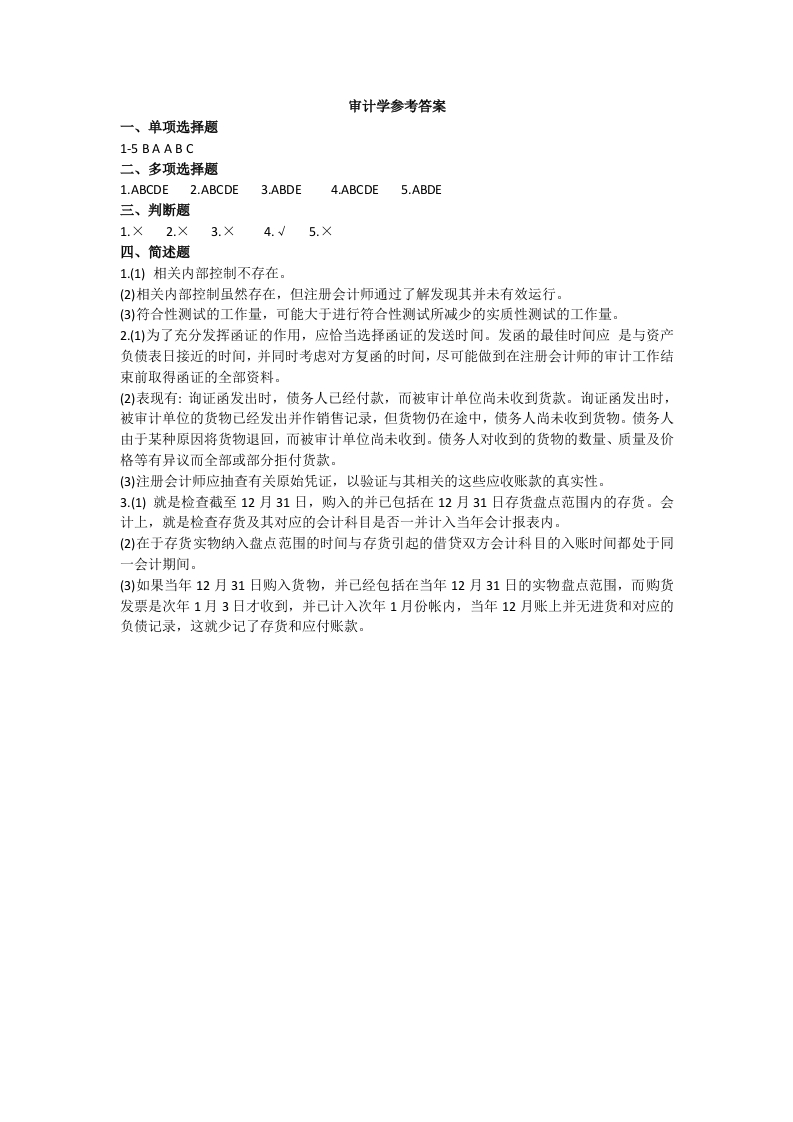 审计学备考练习试题(6)348072@abc1个月前发布关注私信26KB3页042审计学备考练习试题(6)此内容为付费资源,请付费后查看¥17¥19黄金会员免费钻石会员免费立即购买您当前未登录!建议登陆后购买,可保存购买订单付费资源 第1页 / 共3页 第2页 / 共3页 第3页 / 共3页 已完成全部阅读,共3页 THE ENDPPT模板 喜欢就支持一下吧收藏