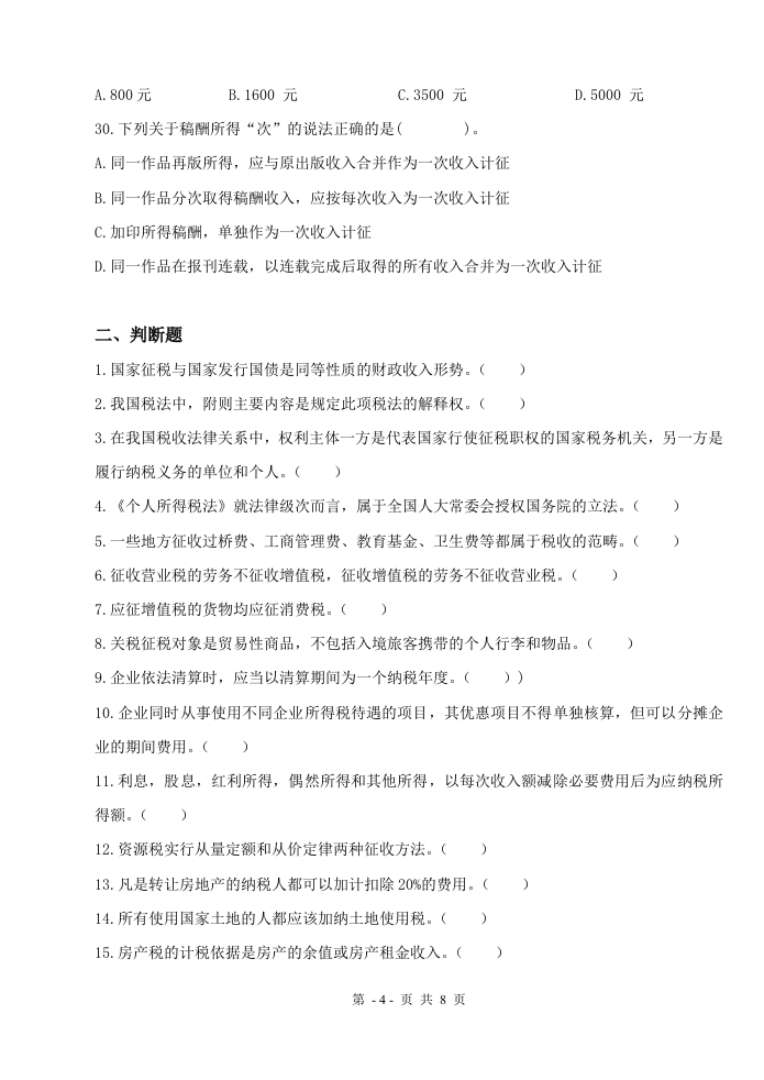 税法(备考练习试题)348072@abc6天前发布关注私信58KB8页040税法(备考练习试题)此内容为付费资源,请付费后查看¥17¥19黄金会员免费钻石会员免费立即购买您当前未登录!建议登陆后购买,可保存购买订单付费资源 第1页 / 共8页 第2页 / 共8页 第3页 / 共8页 第4页 / 共8页 试读已结束,还剩4页,您可下载完整版后进行离线阅读 THE ENDPPT模板 喜欢就支持一下吧收藏