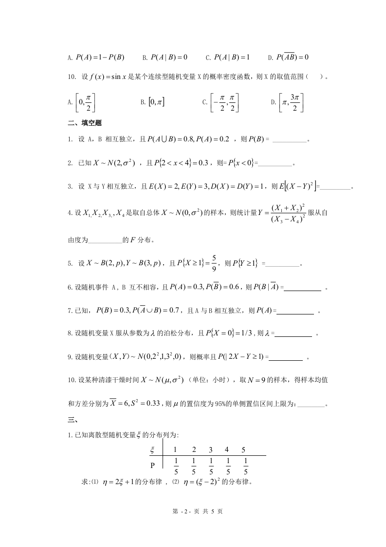 概率论与数理统计A卷-备考练习试题348072@abc6天前发布关注私信0.28MB5页022概率论与数理统计A卷-备考练习试题此内容为付费资源,请付费后查看¥19¥23黄金会员免费钻石会员免费立即购买您当前未登录!建议登陆后购买,可保存购买订单付费资源 第1页 / 共5页 第2页 / 共5页 第3页 / 共5页 第4页 / 共5页 试读已结束,还剩1页,您可下载完整版后进行离线阅读 THE ENDPPT模板历史学类哲学类土木工程 喜欢就支持一下吧收藏