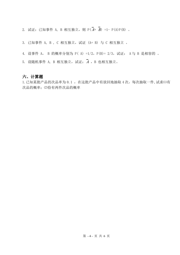 概率与统计A卷(备考练习试题)(1)348072@abc6天前发布关注私信0.10MB6页039概率与统计A卷(备考练习试题)(1)此内容为付费资源,请付费后查看¥19¥23黄金会员免费钻石会员免费立即购买您当前未登录!建议登陆后购买,可保存购买订单付费资源 第1页 / 共6页 第2页 / 共6页 第3页 / 共6页 第4页 / 共6页 试读已结束,还剩2页,您可下载完整版后进行离线阅读 THE ENDPPT模板历史学类哲学类土木工程 喜欢就支持一下吧收藏
