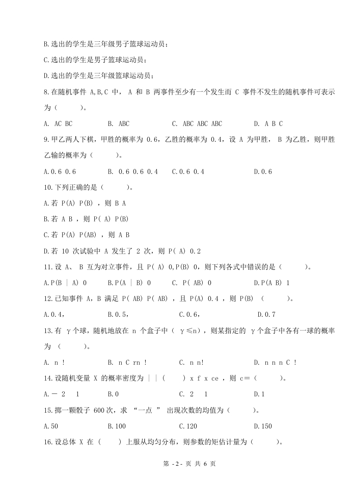 概率与统计A卷(备考练习试题)348072@abc6天前发布关注私信0.11MB6页039概率与统计A卷(备考练习试题)此内容为付费资源,请付费后查看¥19¥23黄金会员免费钻石会员免费立即购买您当前未登录!建议登陆后购买,可保存购买订单付费资源 第1页 / 共6页 第2页 / 共6页 第3页 / 共6页 第4页 / 共6页 试读已结束,还剩2页,您可下载完整版后进行离线阅读 THE ENDPPT模板历史学类哲学类土木工程 喜欢就支持一下吧收藏