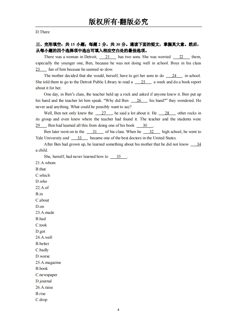 高中起点升本、专科《英语》必考练习题试题348072@abc1个月前发布关注私信0.56MB14页049高中起点升本、专科《英语》必考练习题试题此内容为付费资源,请付费后查看¥19¥23黄金会员免费钻石会员免费立即购买您当前未登录!建议登陆后购买,可保存购买订单付费资源 第1页 / 共14页 第2页 / 共14页 第3页 / 共14页 第4页 / 共14页 试读已结束,还剩10页,您可下载完整版后进行离线阅读 THE ENDPPT模板土木工程打印机电焊机 喜欢就支持一下吧收藏