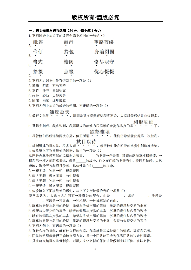 高中起点升本、专科《语文》必考练习题试题348072@abc1个月前发布关注私信0.62MB7页037高中起点升本、专科《语文》必考练习题试题此内容为付费资源,请付费后查看¥19¥23黄金会员免费钻石会员免费立即购买您当前未登录!建议登陆后购买,可保存购买订单付费资源 第1页 / 共7页 第2页 / 共7页 第3页 / 共7页 第4页 / 共7页 试读已结束,还剩3页,您可下载完整版后进行离线阅读 THE ENDPPT模板土木工程打印机电焊机 喜欢就支持一下吧收藏