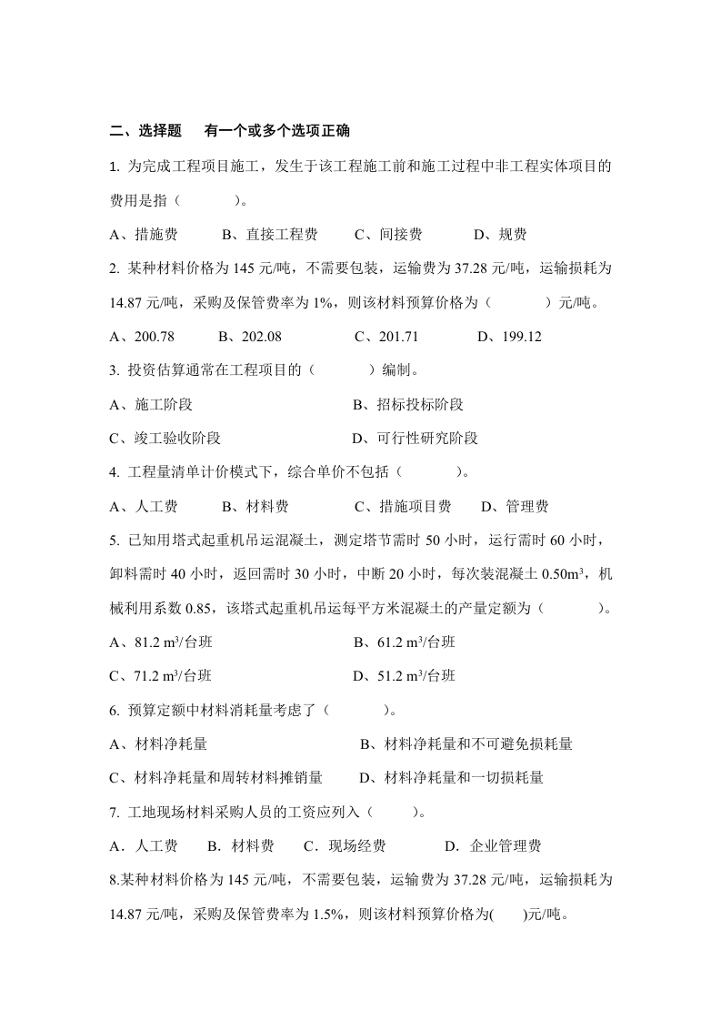 工程估价备考练习试题(2)348072@abc1个月前发布关注私信0.39MB10页044工程估价备考练习试题(2)此内容为付费资源,请付费后查看¥19¥23黄金会员免费钻石会员免费立即购买您当前未登录!建议登陆后购买,可保存购买订单付费资源 第1页 / 共10页 第2页 / 共10页 第3页 / 共10页 第4页 / 共10页 试读已结束,还剩6页,您可下载完整版后进行离线阅读 THE ENDPPT模板土木工程打印机电焊机 喜欢就支持一下吧收藏