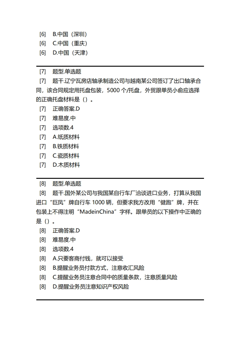 外贸跟单实务-备考联系试题348072@abc1个月前发布关注私信0.75MB171页030外贸跟单实务-备考联系试题此内容为付费资源,请付费后查看¥10¥23黄金会员免费钻石会员免费立即购买您当前未登录!建议登陆后购买,可保存购买订单付费资源 第1页 / 共171页 第2页 / 共171页 第3页 / 共171页 第4页 / 共171页 试读已结束,还剩167页,您可下载完整版后进行离线阅读 THE END办公模板医疗医药单片机设计工程机械 喜欢就支持一下吧收藏