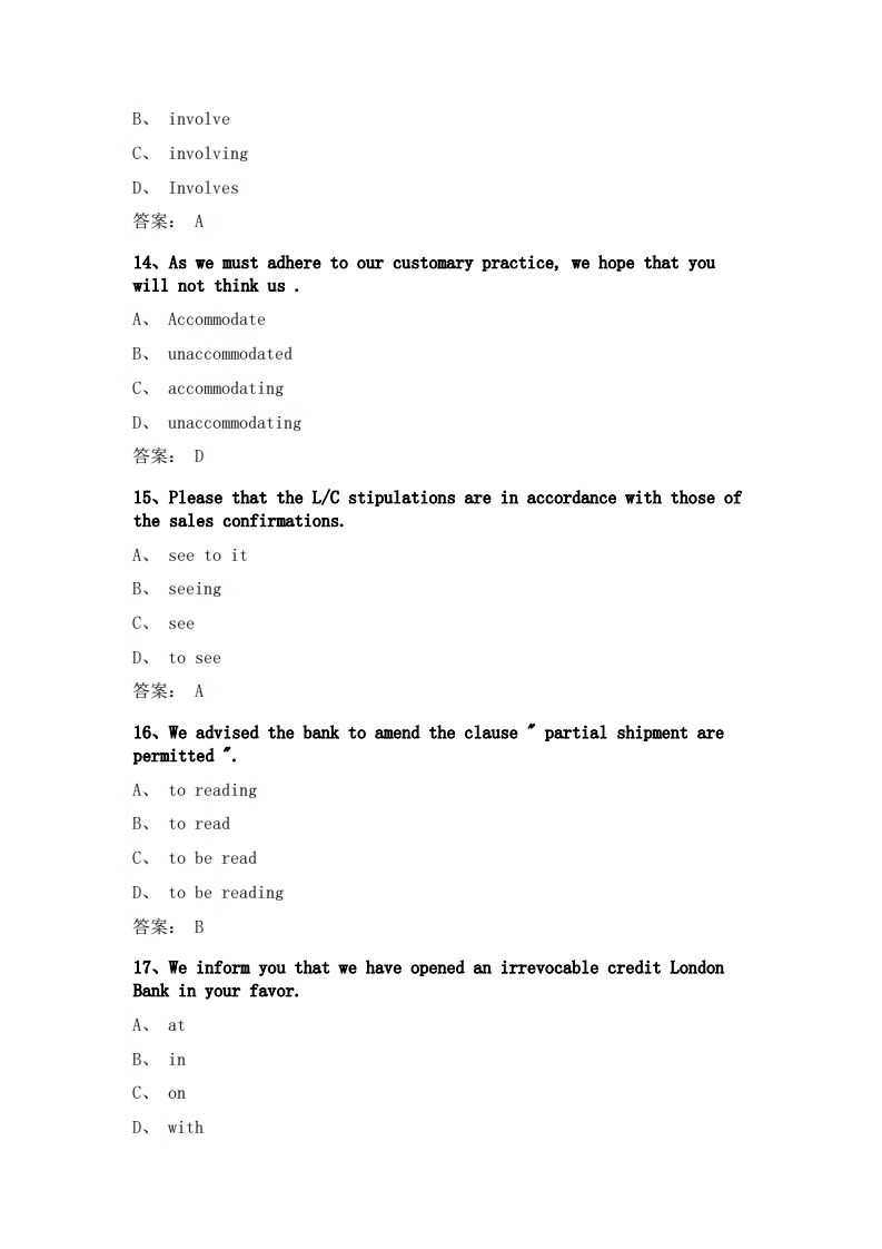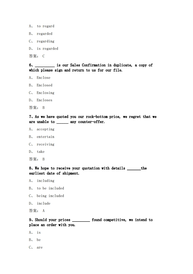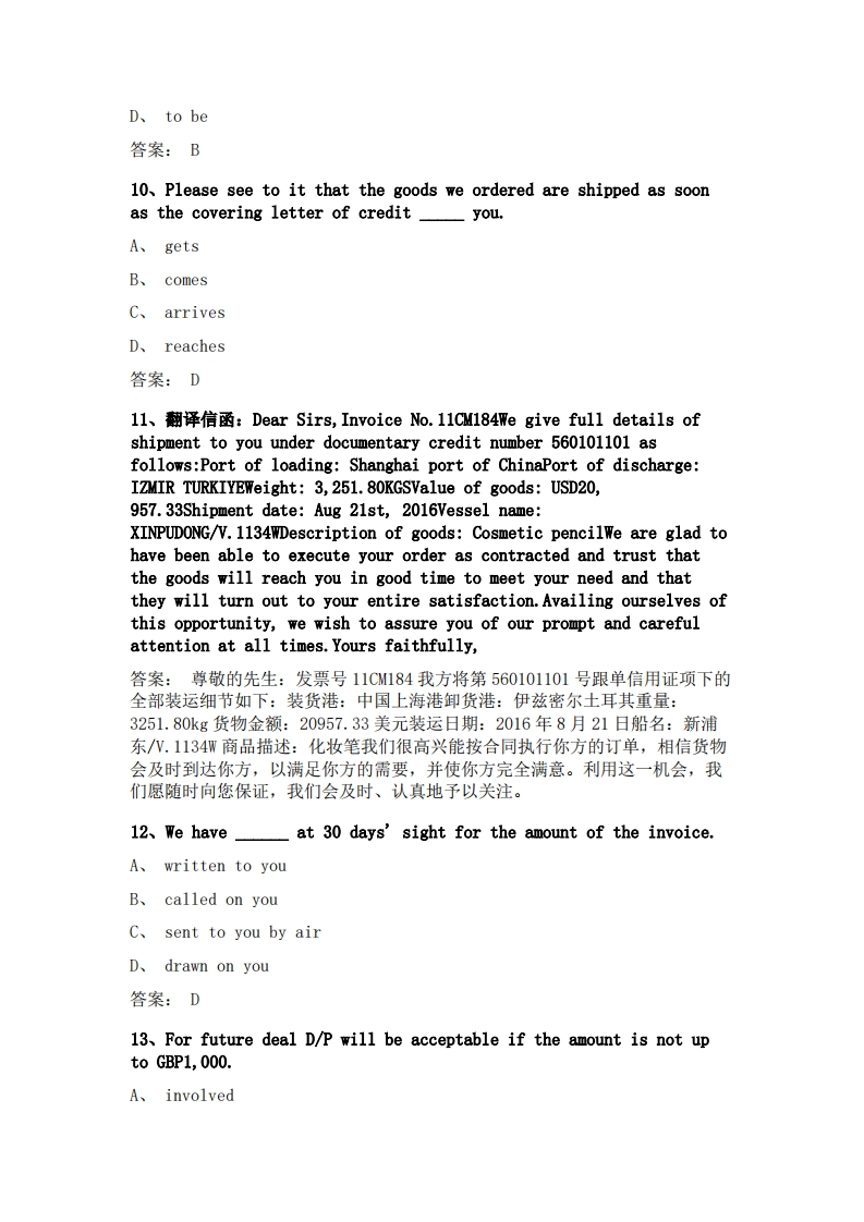外贸函电-备考联系试题348072@abc1个月前发布关注私信0.68MB99页036外贸函电-备考联系试题此内容为付费资源,请付费后查看¥10¥23黄金会员免费钻石会员免费立即购买您当前未登录!建议登陆后购买,可保存购买订单付费资源 第1页 / 共99页 第2页 / 共99页 第3页 / 共99页 第4页 / 共99页 试读已结束,还剩95页,您可下载完整版后进行离线阅读 THE END办公模板医疗医药单片机设计工程机械 喜欢就支持一下吧收藏