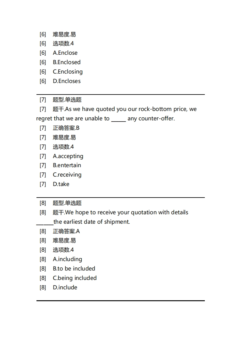 外贸函电-备考联系试题_2348072@abc1个月前发布关注私信0.90MB143页044外贸函电-备考联系试题_2此内容为付费资源,请付费后查看¥10¥23黄金会员免费钻石会员免费立即购买您当前未登录!建议登陆后购买,可保存购买订单付费资源 第1页 / 共143页 第2页 / 共143页 第3页 / 共143页 第4页 / 共143页 试读已结束,还剩139页,您可下载完整版后进行离线阅读 THE END办公模板医疗医药单片机设计工程机械 喜欢就支持一下吧收藏