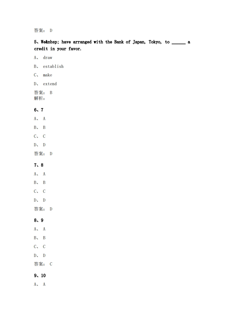 外贸英语函电必考练习题试题348072@abc1个月前发布关注私信0.59MB112页047外贸英语函电必考练习题试题此内容为付费资源,请付费后查看¥10¥23黄金会员免费钻石会员免费立即购买您当前未登录!建议登陆后购买,可保存购买订单付费资源 第1页 / 共112页 第2页 / 共112页 第3页 / 共112页 第4页 / 共112页 试读已结束,还剩108页,您可下载完整版后进行离线阅读 THE END办公模板医疗医药单片机设计工程机械 喜欢就支持一下吧收藏