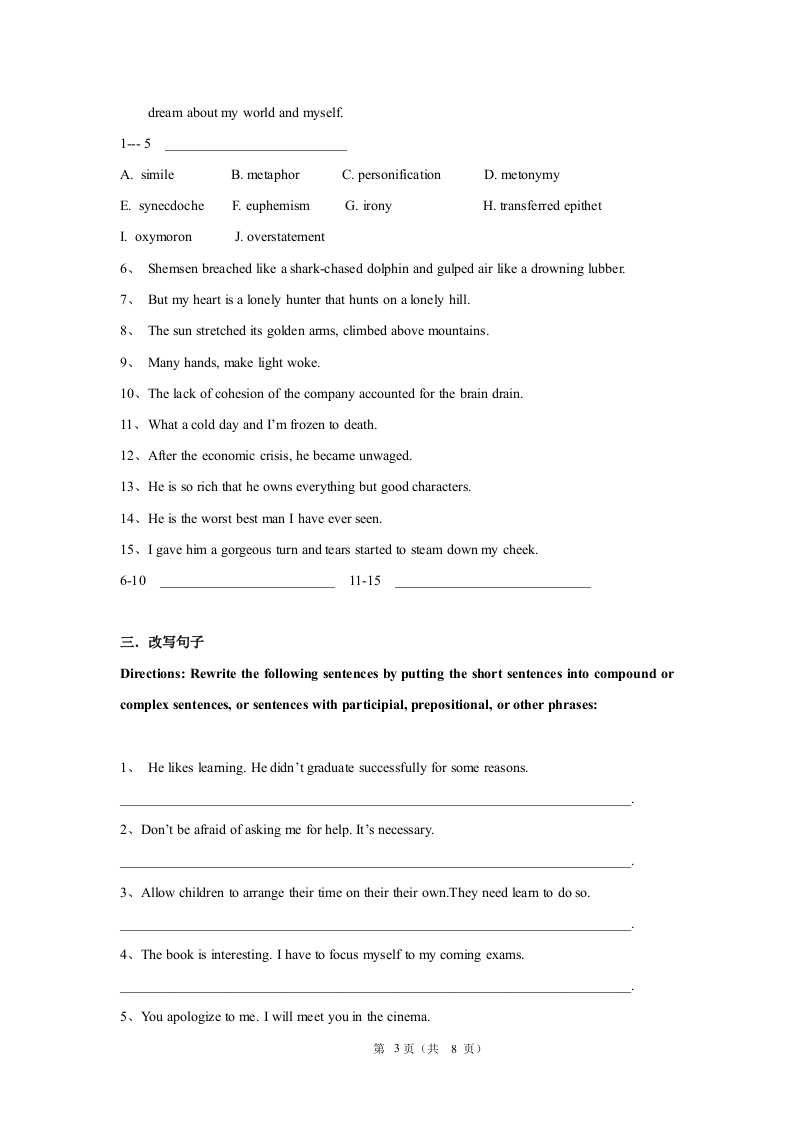 英语写作二备考练习试题(1)348072@abc3个月前发布关注私信45.65KB15页040英语写作二备考练习试题(1)此内容为付费资源,请付费后查看¥13¥19黄金会员免费钻石会员免费立即购买您当前未登录!建议登陆后购买,可保存购买订单付费资源 第1页 / 共15页 第2页 / 共15页 第3页 / 共15页 试读已结束,还剩12页,您可下载完整版后进行离线阅读 THE ENDPPT模板高考真题 喜欢就支持一下吧收藏