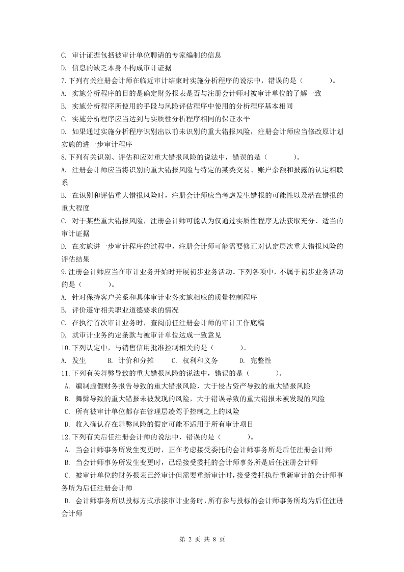 注册会计师业务试卷A卷-备考练习试题348072@abc38天前发布关注私信54KB8页049注册会计师业务试卷A卷-备考练习试题此内容为付费资源,请付费后查看¥13¥19黄金会员免费钻石会员免费立即购买您当前未登录!建议登陆后购买,可保存购买订单付费资源 第1页 / 共8页 第2页 / 共8页 第3页 / 共8页 试读已结束,还剩5页,您可下载完整版后进行离线阅读 THE ENDPPT模板高考真题 喜欢就支持一下吧收藏