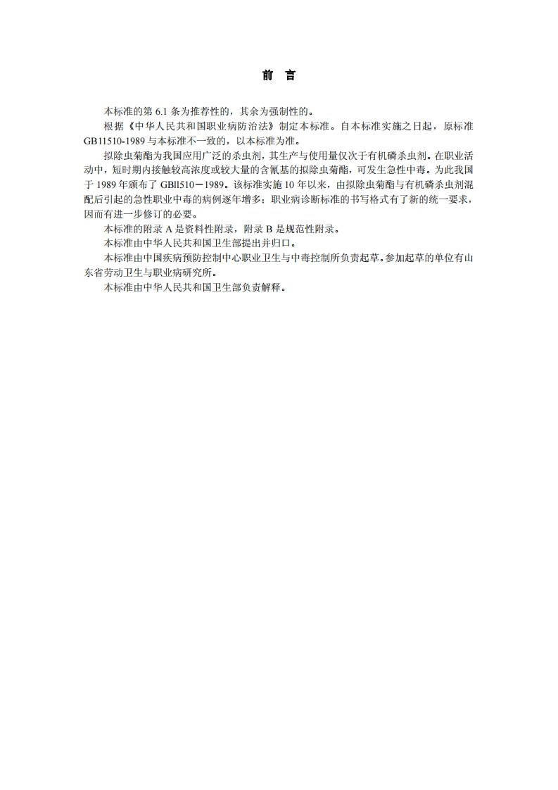 GBZ中华人民共和国国家职业卫生标准GBZ43-2002职业性急性拟除虫菊酯中毒诊断标准DiagnosticCriteriaofOccupationalAcutePyrethroidsPoisoning348072@abc9天前发布关注私信0.14MB6页025GBZ中华人民共和国国家职业卫生标准GBZ43-2002职业性急性拟除虫菊酯中毒诊断标准DiagnosticCriteriaofOccupationalAcutePyrethroidsPoisoning此内容为付费资源,请付费后查看¥16¥23黄金会员免费钻石会员免费立即购买您当前未登录!建议登陆后购买,可保存购买订单付费资源 第1页 / 共6页 第2页 / 共6页 第3页 / 共6页 试读已结束,还剩3页,您可下载完整版后进行离线阅读 THE END医学类医疗医药标准规范法律法规管理学类 喜欢就支持一下吧收藏