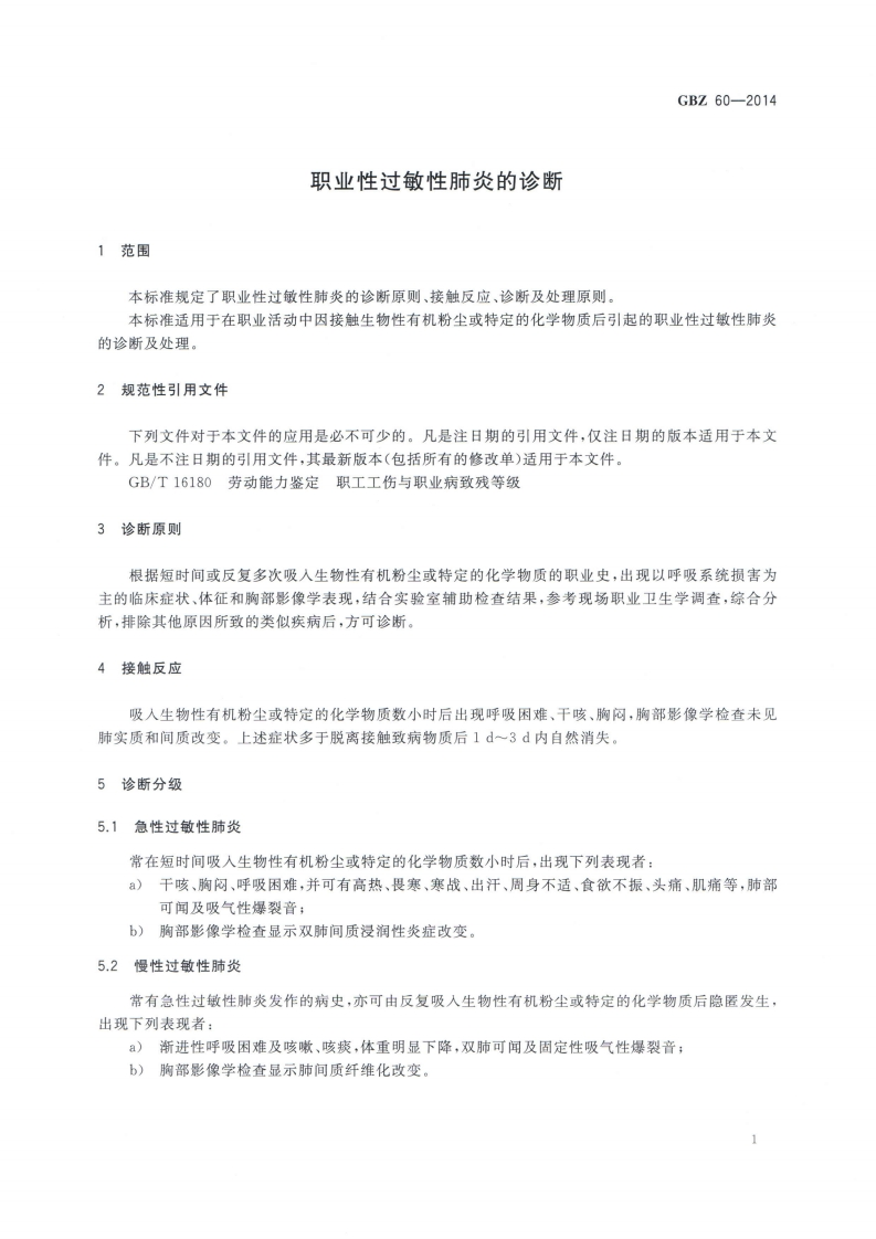 中华人民共和国国家职业卫生标准GBZ60-2014代替GBZ60-2002职业性过敏性肺炎的诊断Diagnosisofoccupationalhypersensitivitypneumoniti348072@abc14天前发布关注私信2.32MB6页025中华人民共和国国家职业卫生标准GBZ60-2014代替GBZ60-2002职业性过敏性肺炎的诊断Diagnosisofoccupationalhypersensitivitypneumoniti此内容为付费资源,请付费后查看¥16¥23黄金会员免费钻石会员免费立即购买您当前未登录!建议登陆后购买,可保存购买订单付费资源 第1页 / 共6页 第2页 / 共6页 第3页 / 共6页 试读已结束,还剩3页,您可下载完整版后进行离线阅读 THE END医学类医疗医药标准规范法律法规管理学类 喜欢就支持一下吧收藏