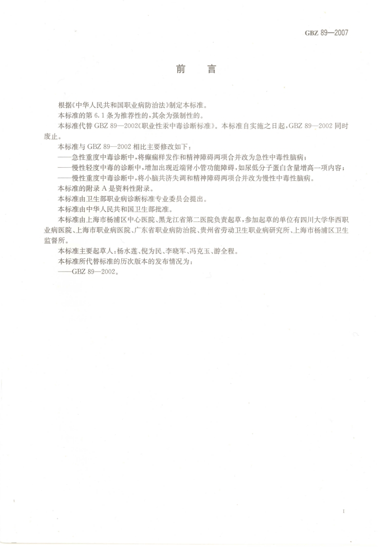 中华人民共和国国家职业卫生标准GBZ89-2007代替GBZ89-2002职业性汞中毒诊断标准Diagnosticcriteriaofoccupationalmercurypoisoning348072@abc15天前发布关注私信2.33MB6页037中华人民共和国国家职业卫生标准GBZ89-2007代替GBZ89-2002职业性汞中毒诊断标准Diagnosticcriteriaofoccupationalmercurypoisoning此内容为付费资源,请付费后查看¥16¥23黄金会员免费钻石会员免费立即购买您当前未登录!建议登陆后购买,可保存购买订单付费资源 第1页 / 共6页 第2页 / 共6页 第3页 / 共6页 试读已结束,还剩3页,您可下载完整版后进行离线阅读 THE END医学类医疗医药标准规范法律法规管理学类 喜欢就支持一下吧收藏