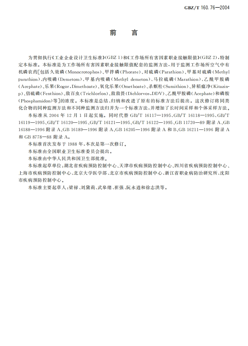中华人民共和国国家职业卫生标准GBZ_T160.76-2004工作场所空气有毒物质测定有机磷农药Methodsfordeterminationoforganophosphoruspesticidesintheairofworkplace348072@abc19天前发布关注私信2.71MB10页048中华人民共和国国家职业卫生标准GBZ_T160.76-2004工作场所空气有毒物质测定有机磷农药Methodsfordeterminationoforganophosphoruspesticidesintheairofworkplace此内容为付费资源,请付费后查看¥16¥23黄金会员免费钻石会员免费立即购买您当前未登录!建议登陆后购买,可保存购买订单付费资源 第1页 / 共10页 第2页 / 共10页 第3页 / 共10页 试读已结束,还剩7页,您可下载完整版后进行离线阅读 THE END医学类医疗医药标准规范法律法规管理学类 喜欢就支持一下吧收藏